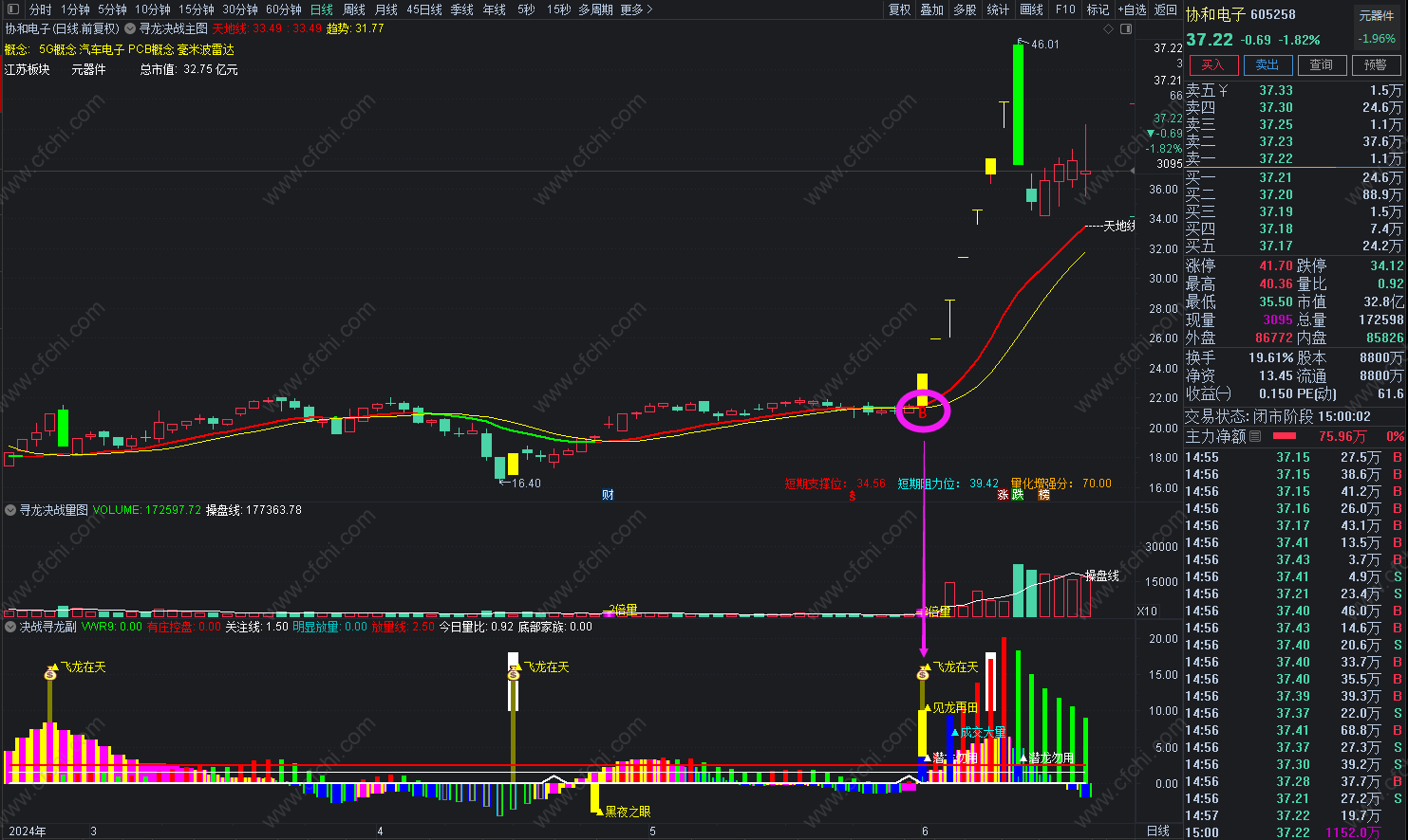 【紫紫红黄】通达信龙头启动主图+紫紫红黄(四合一)副图指标,源码分享