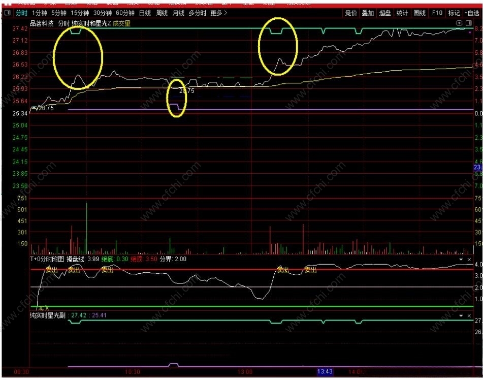(通达信钻级【实时星光】分时主图附图指标高抛低吸利器无未来函数分时做T专用手机电脑通用)