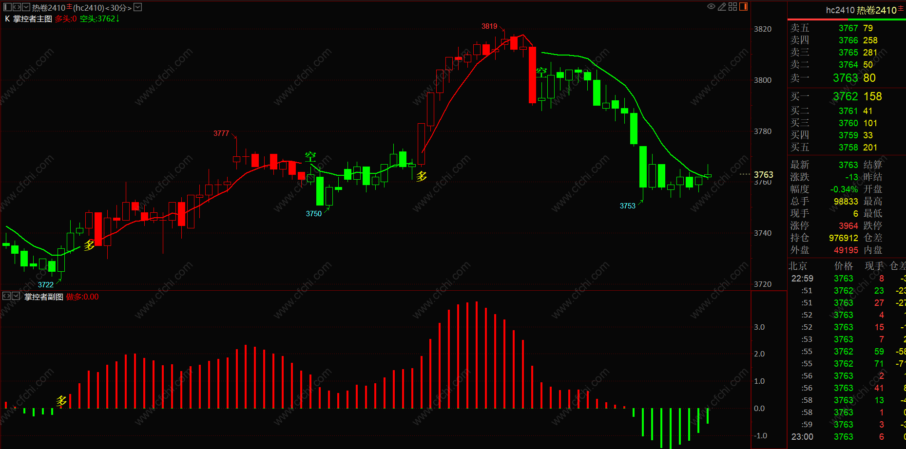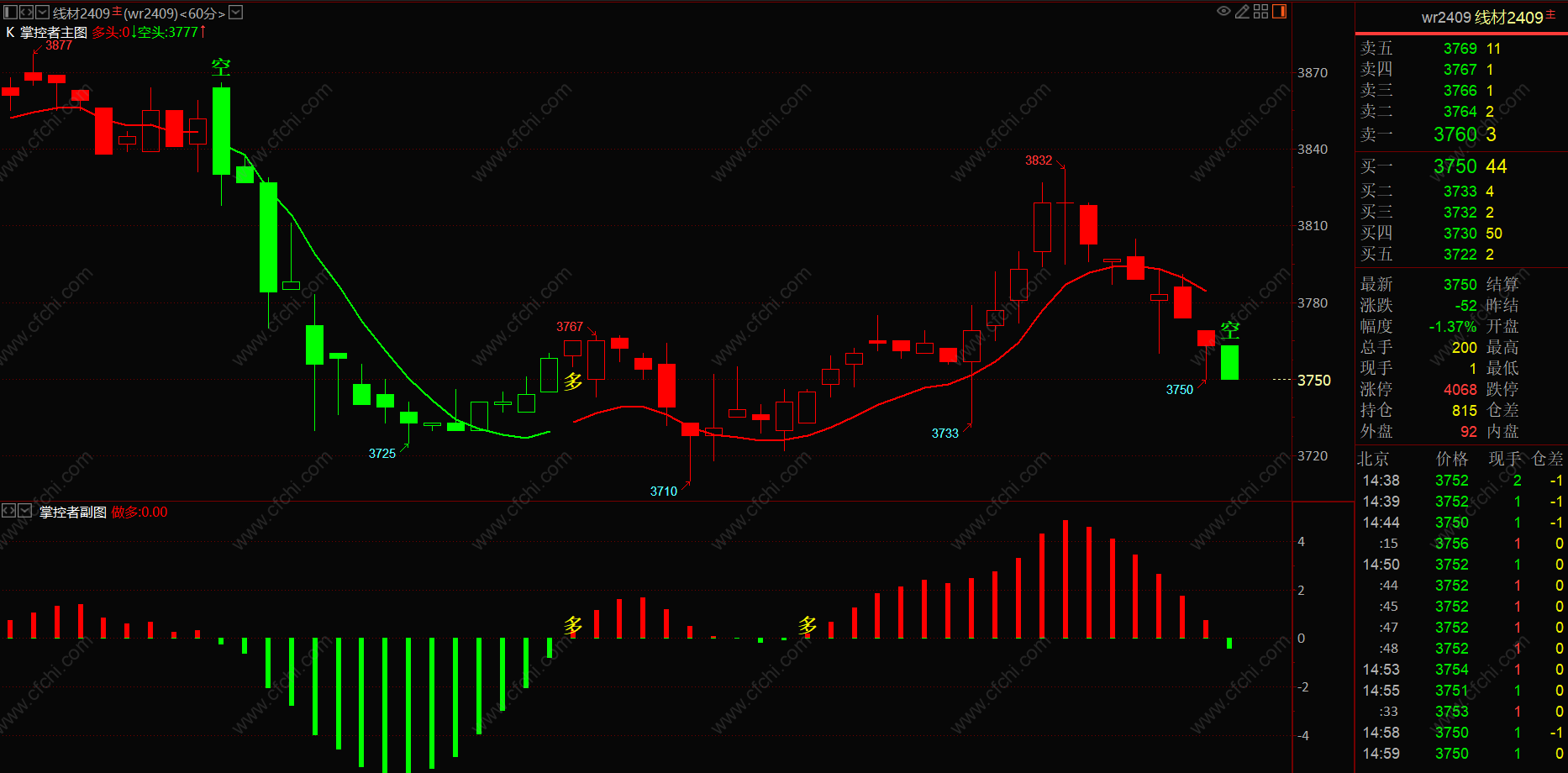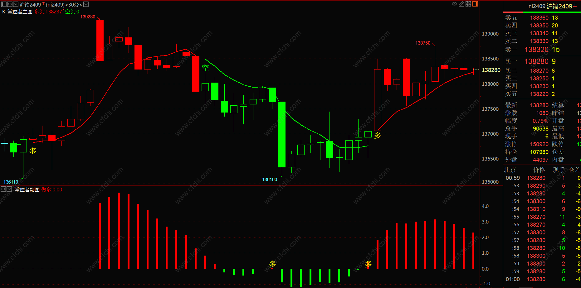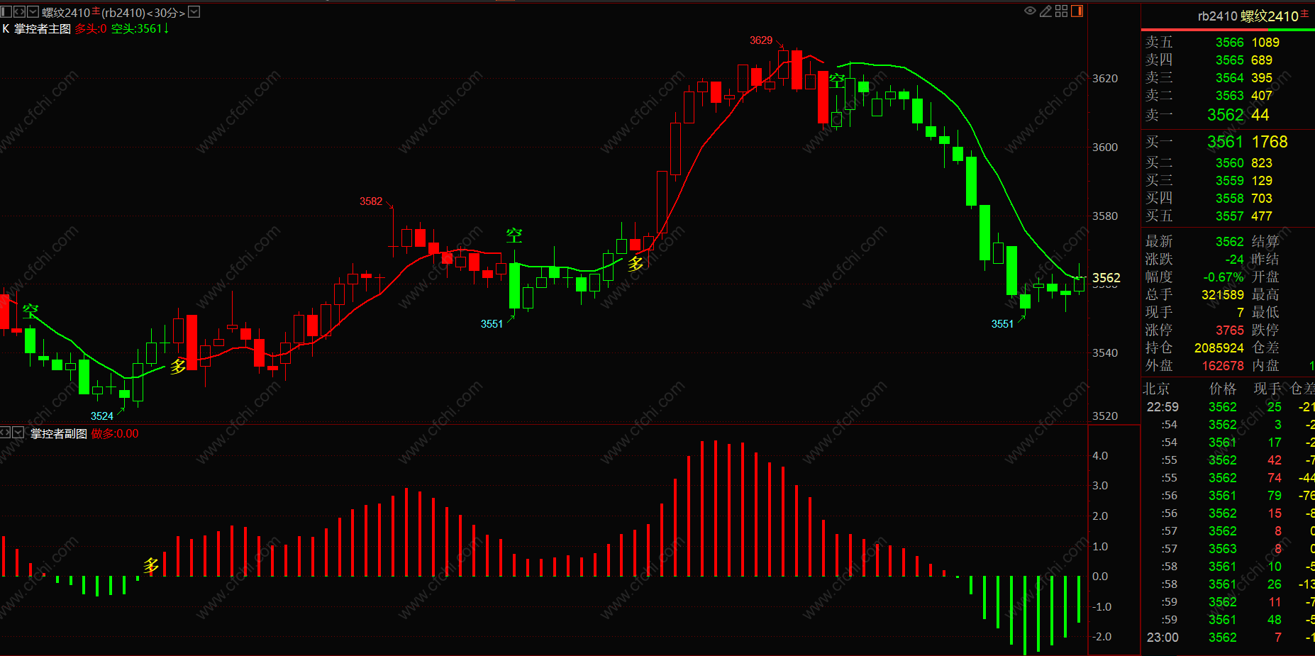 掌控者主图:出现多字提示做多,出现空字提示做空