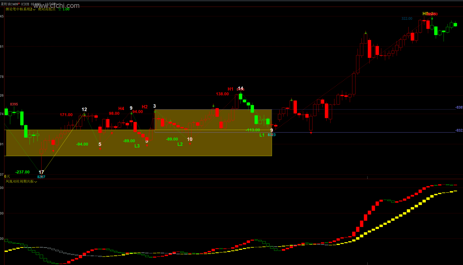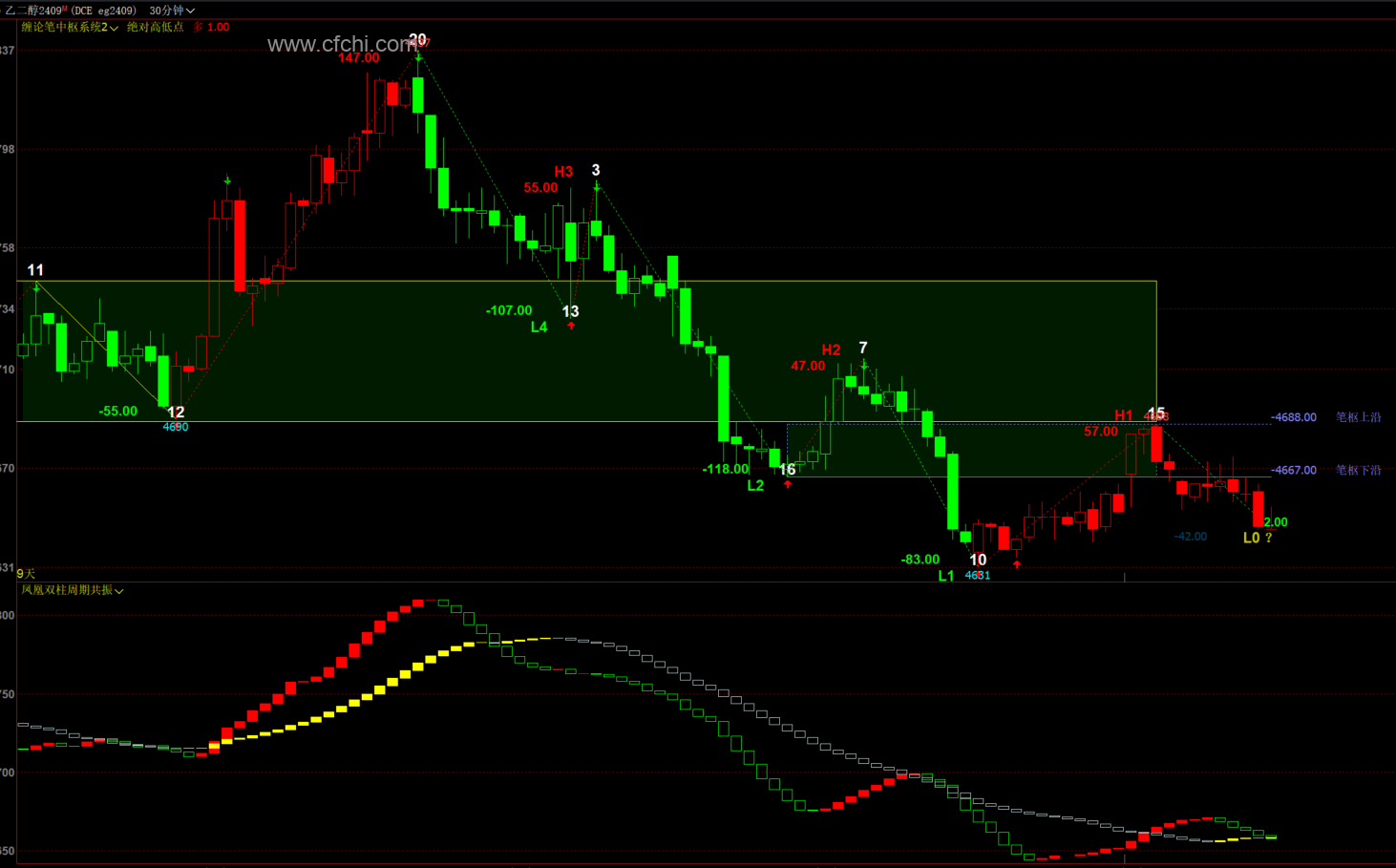 (文华财经期货缠论笔中枢高低点画线多空红绿柱指标公式)