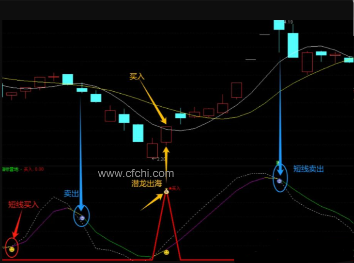 4、非超短线操作,可在潜龙出海钱袋子信号后,沿着MACD红柱发散时,一直持有,待MACD死叉时卖出。