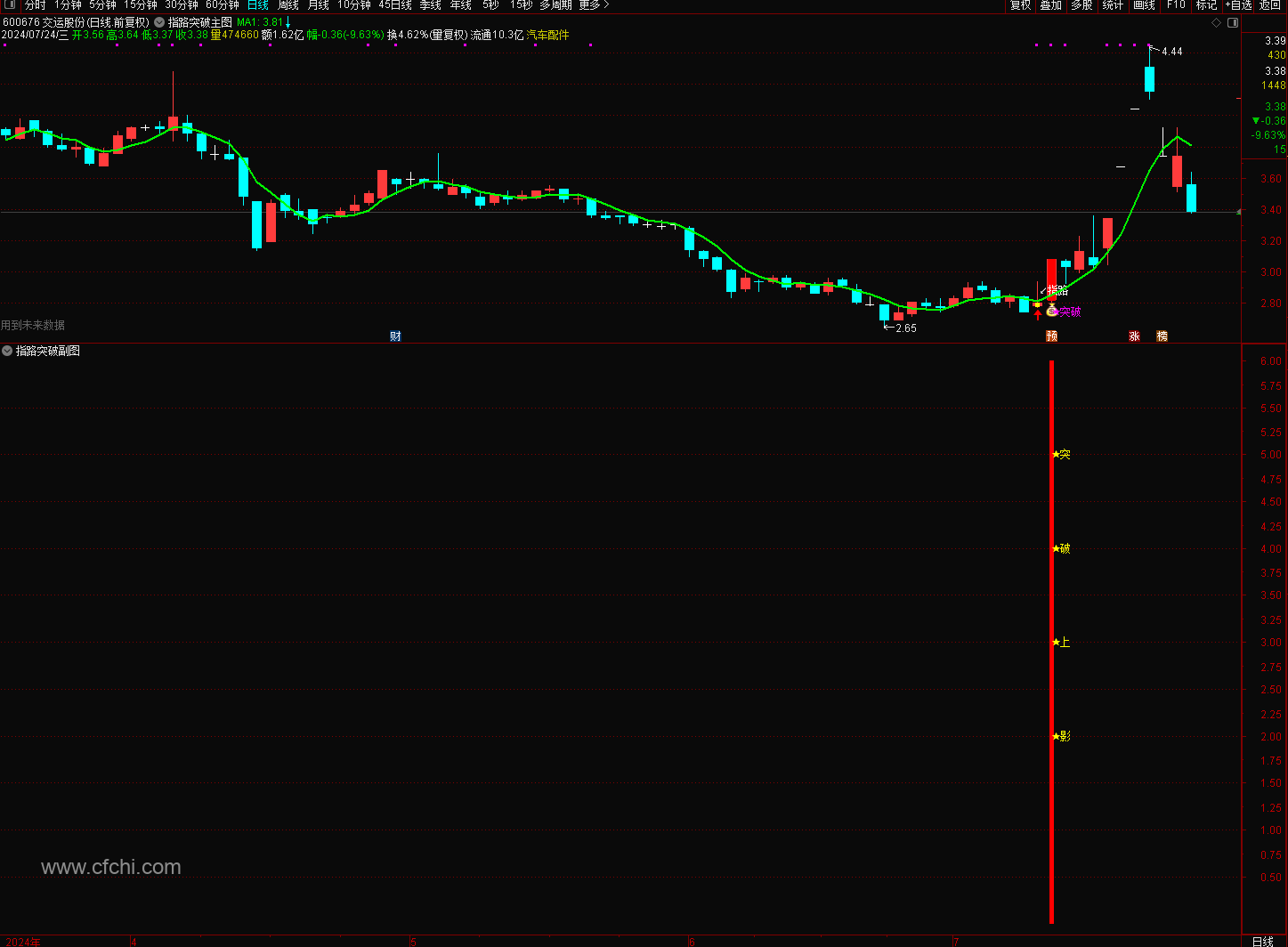 前一日的“指路”信号出现时,使用了未来,只是为了方便看出,不影响“突破”信号的参考使用,“突破”信号无未来函数。