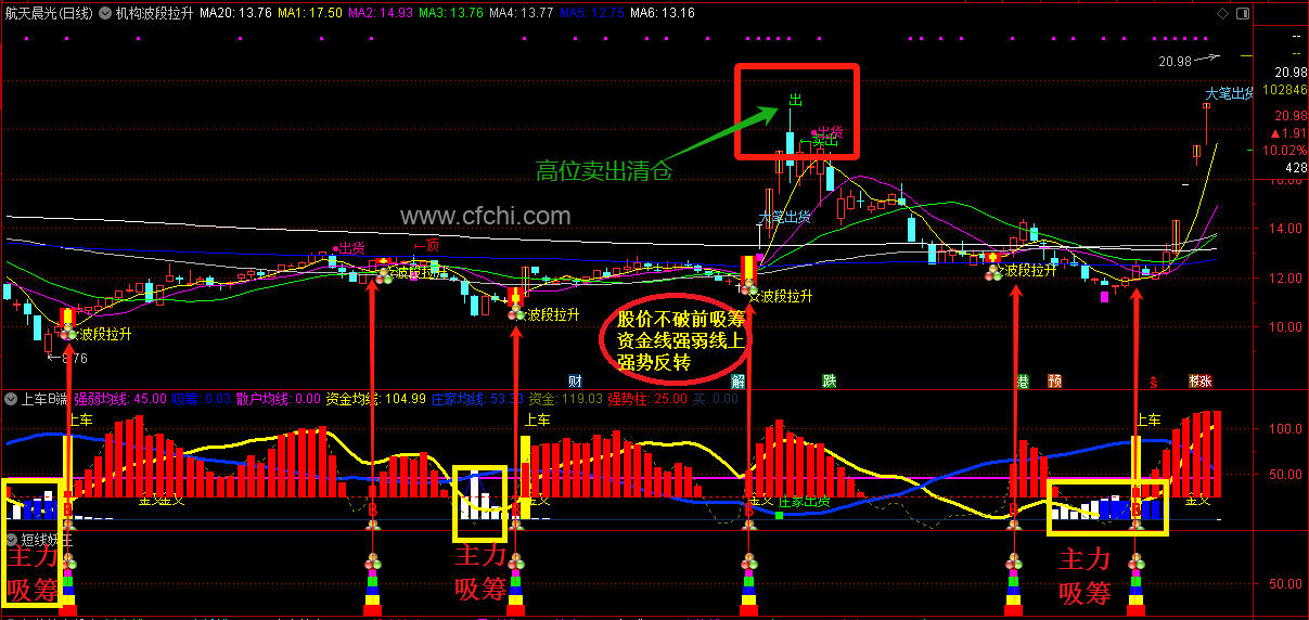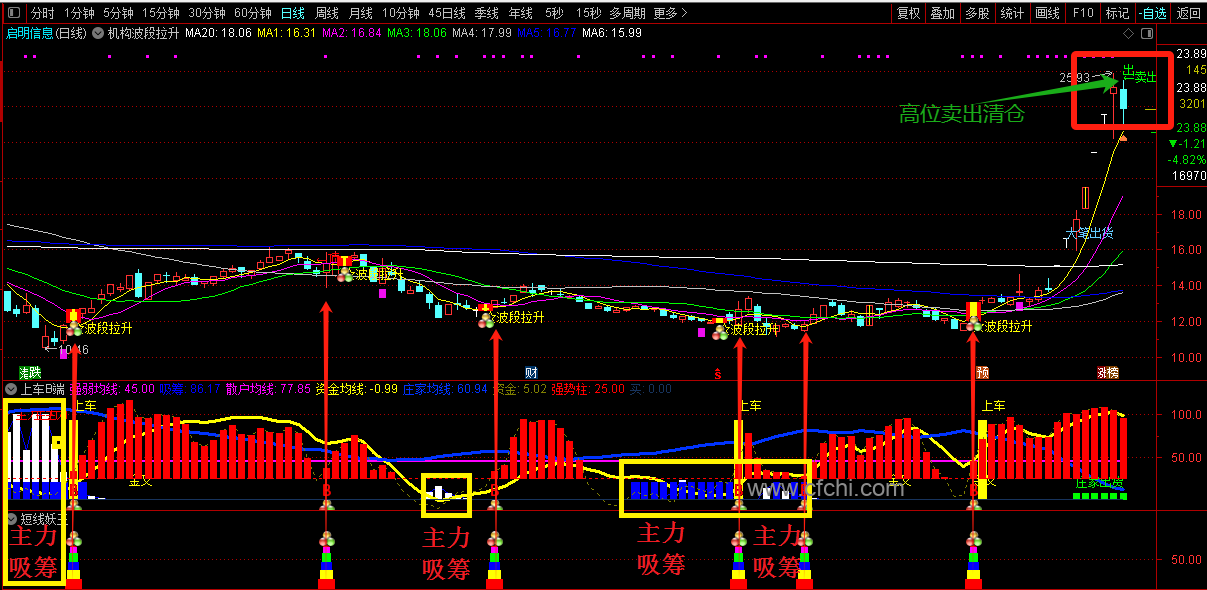 主力自己各种操盘阶段,可以清楚地分辨出来,帮助我们及时发现主升浪,跟着主力吃肉!含选股公式