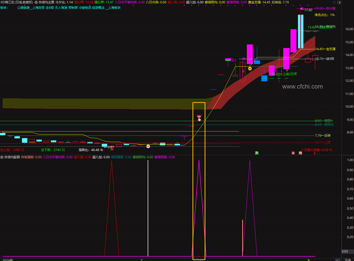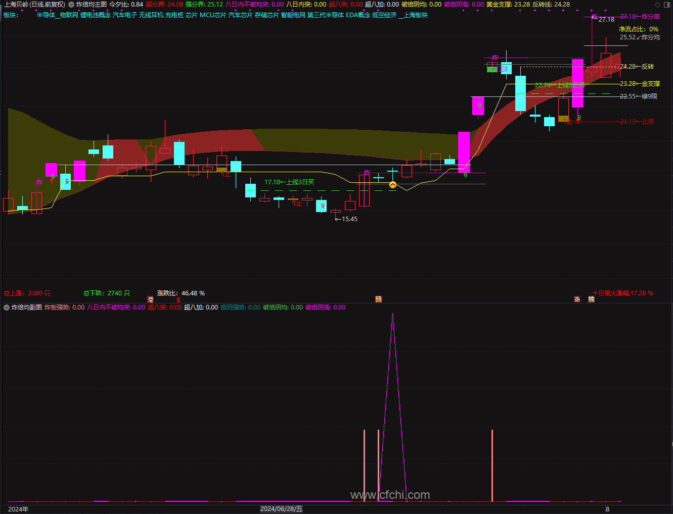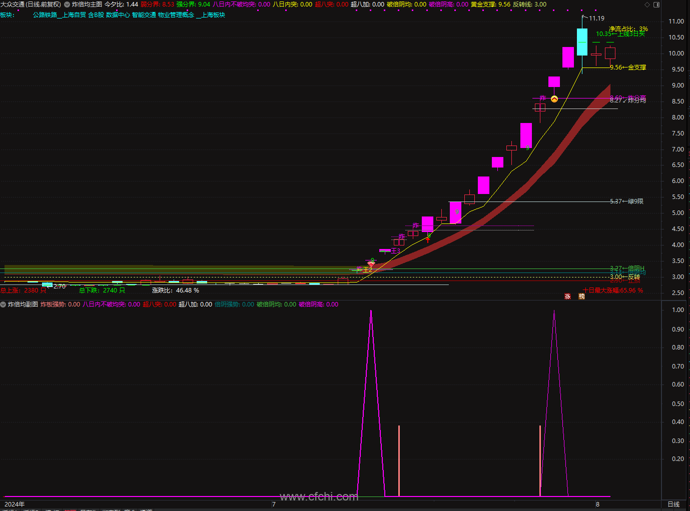 (金典通达信【炸倍指标组】有很好的参考价值 大众交通、上海贝岭大赚60个点 源码)