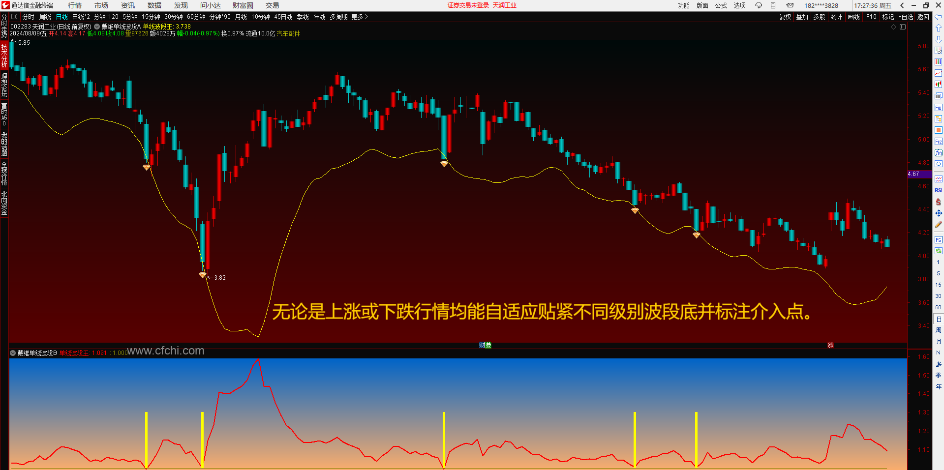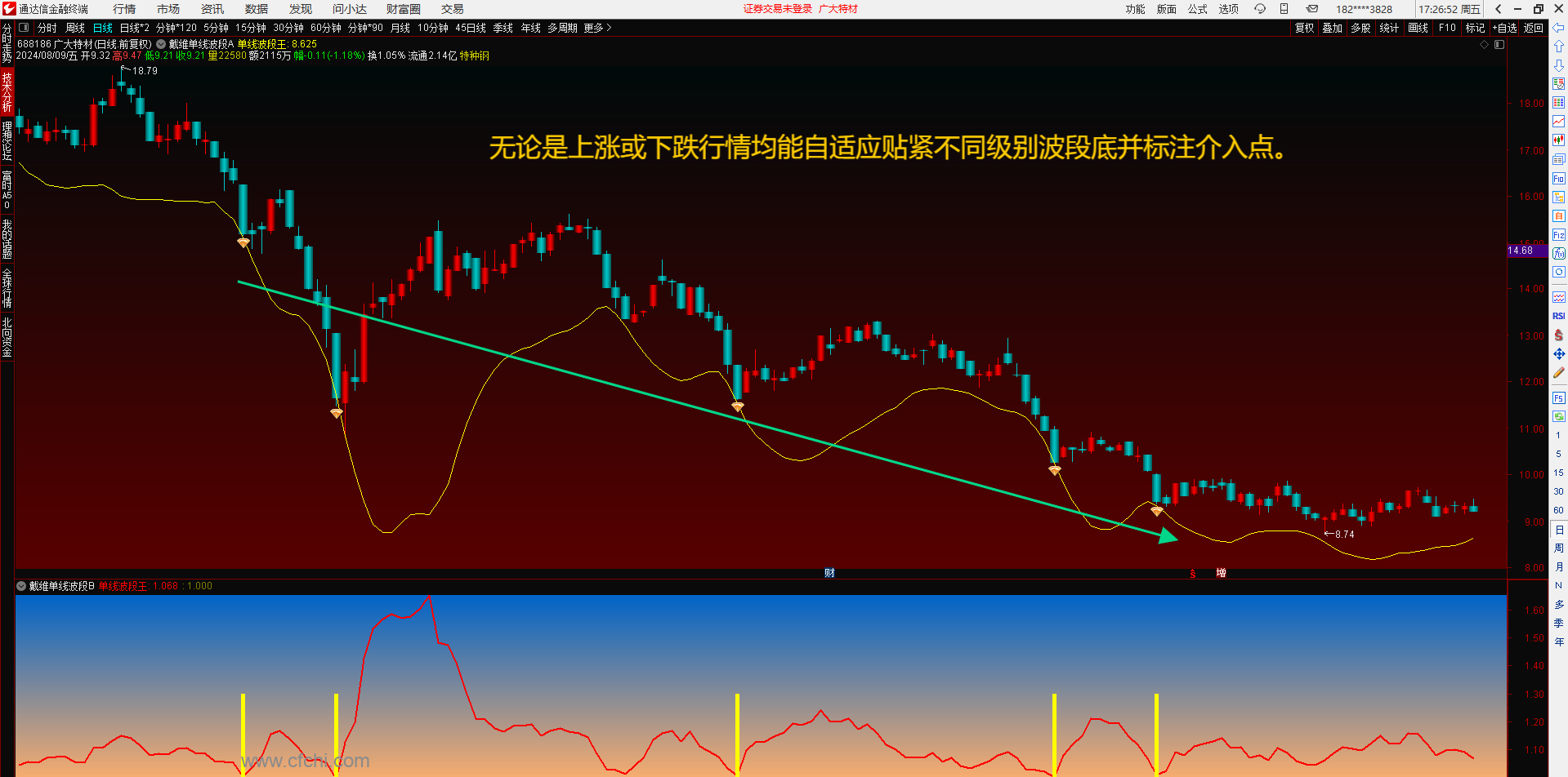 此次新指标设计逻辑围绕“极简洁、自适应、易用性、无未来、信号均”为主旨,强调大小波段底均能在指标中找到介入标准,不分周期级别,无论中短操作皆可为。