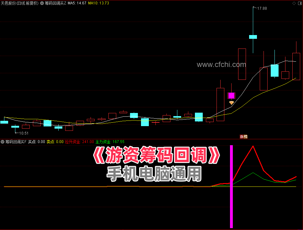 (通达信游资筹码回调买入主图+附图选股,捕捉筹码突破黑马信号,手机电脑通用无未来函数)