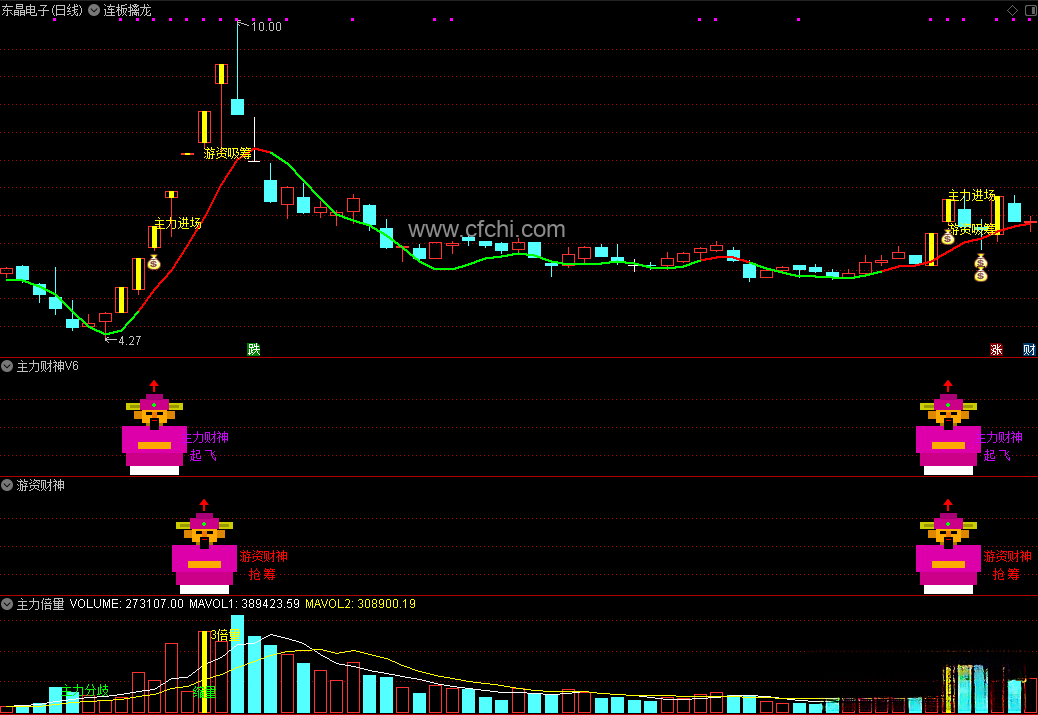 (通达信【主力财神+游资财神】主副图选股指标带倍量评分主图某音热门淘来的手机电脑通用)
