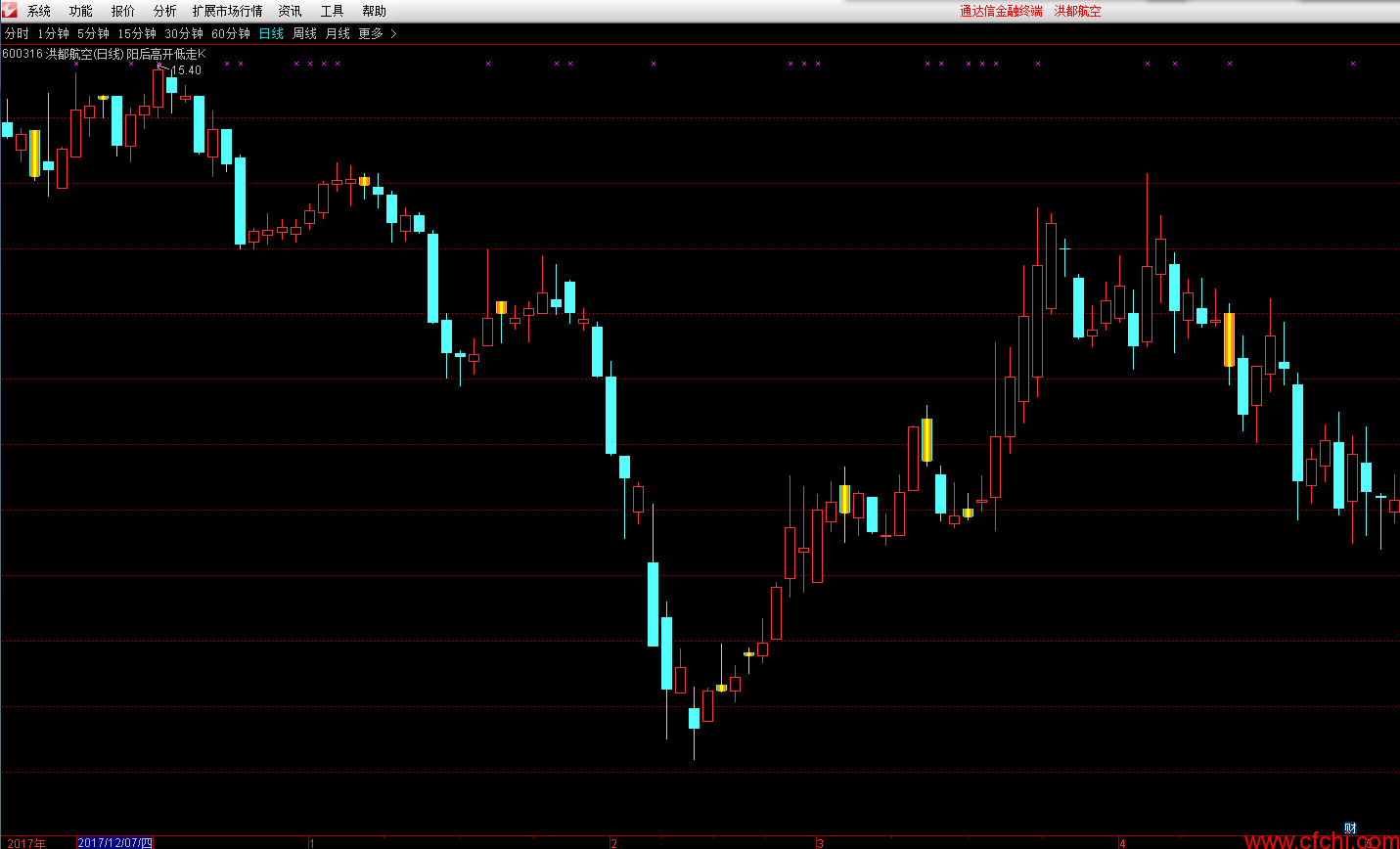 STICKLINE(条件>0,O,C,0.5,0),COLOR00FFFF;