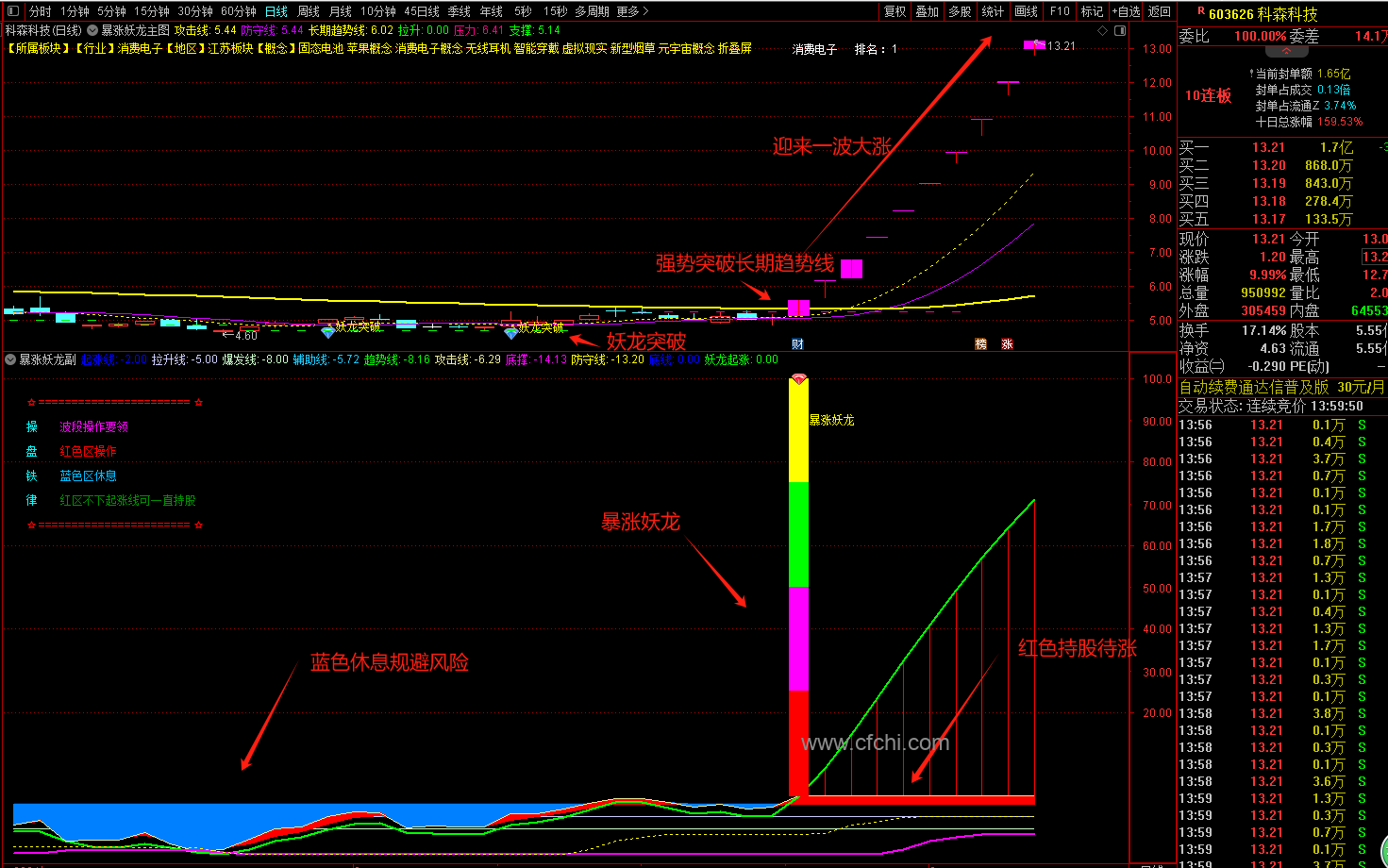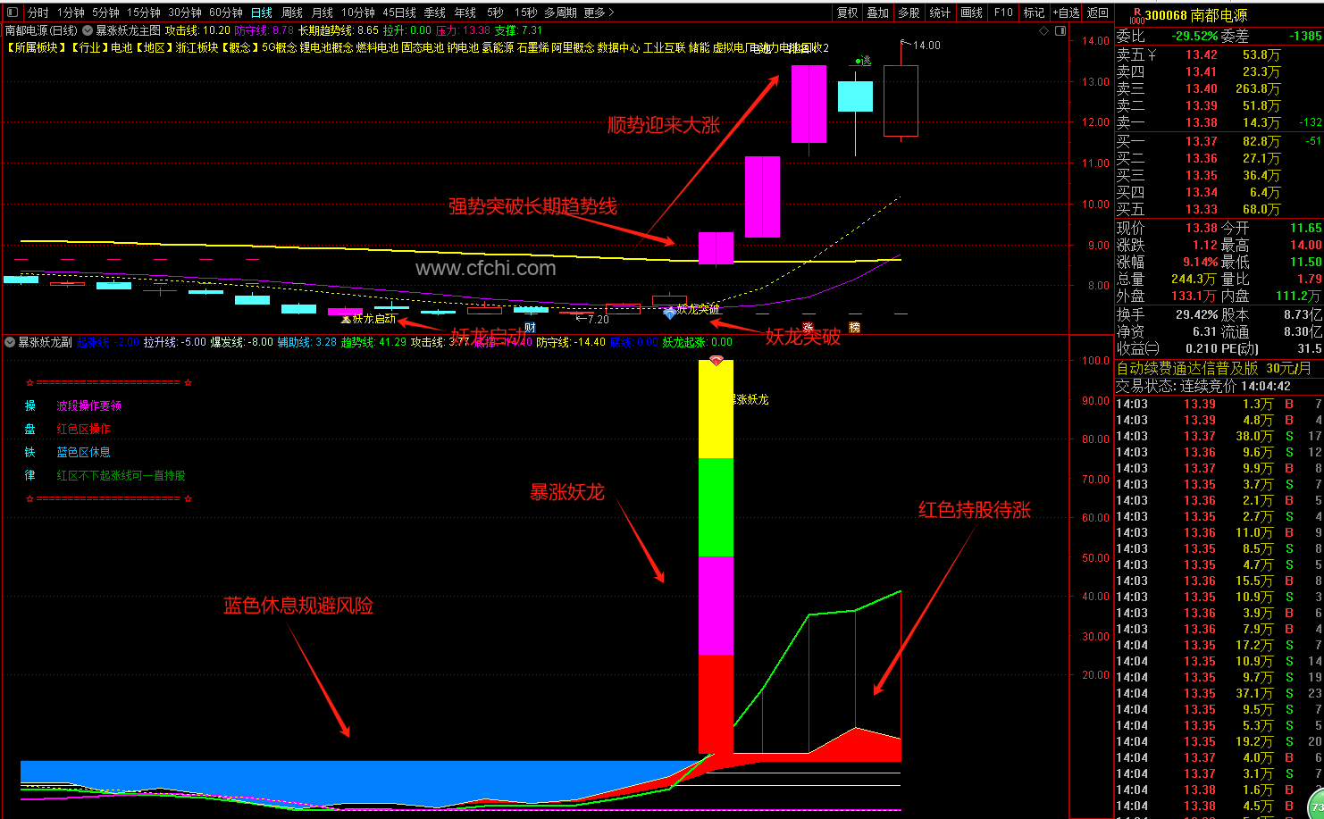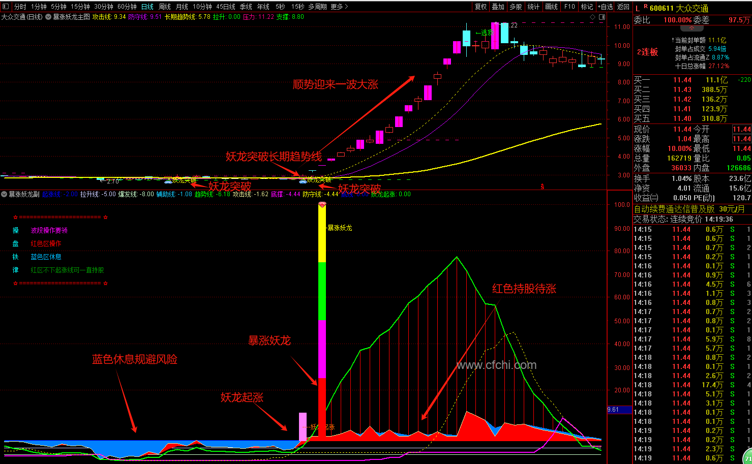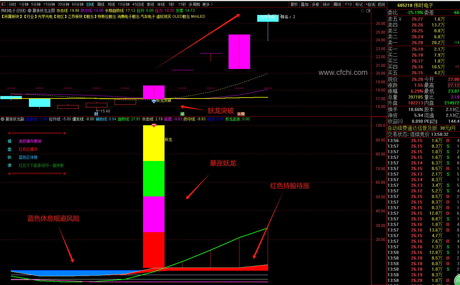 通达信【三浪捉妖】主副图/选股预警 适合牛市行情的波段捉妖利器 买在妖股