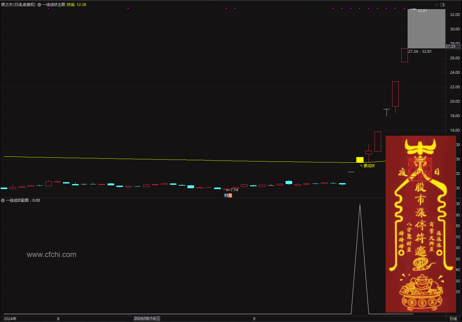 (金典通达信一线成妖主图附图选股指标源码)