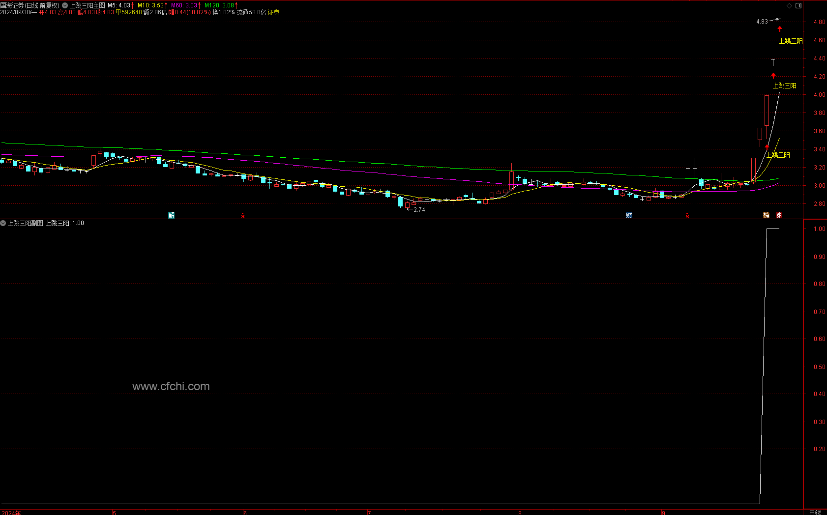 (金典通达信【上跳三阳战法】套装,捕捉股市连续上涨动能的强势信号指标)