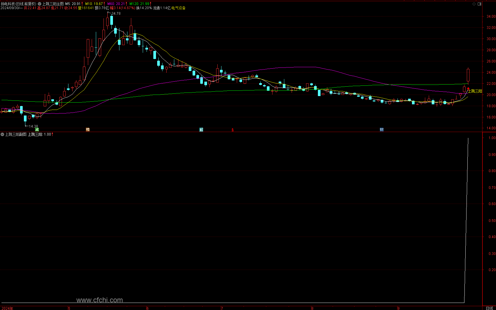 警惕虚假信号:虽然上跳三阳具有一定的技术含义,但并非绝对可靠。在实战中,投资者应结合其他技术指标和市场信息进行综合分析,以避免被虚假信号所误导。