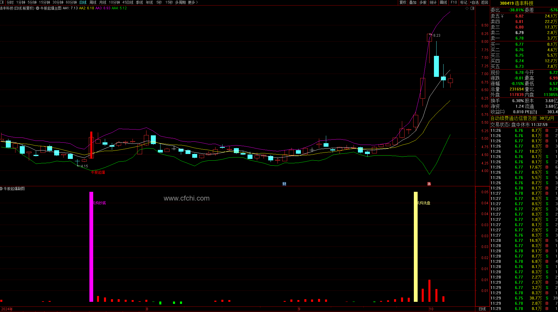 精华版:分时主力吸筹:增加了买入点提示,效果不错。手机电脑都可用。
