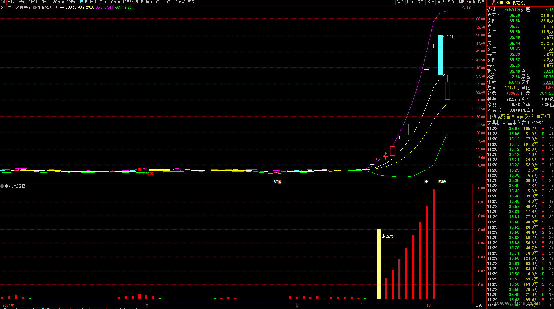 【机构大牛启动】副图/选股 机构操盘架构 捕捉大牛股启动信号指标