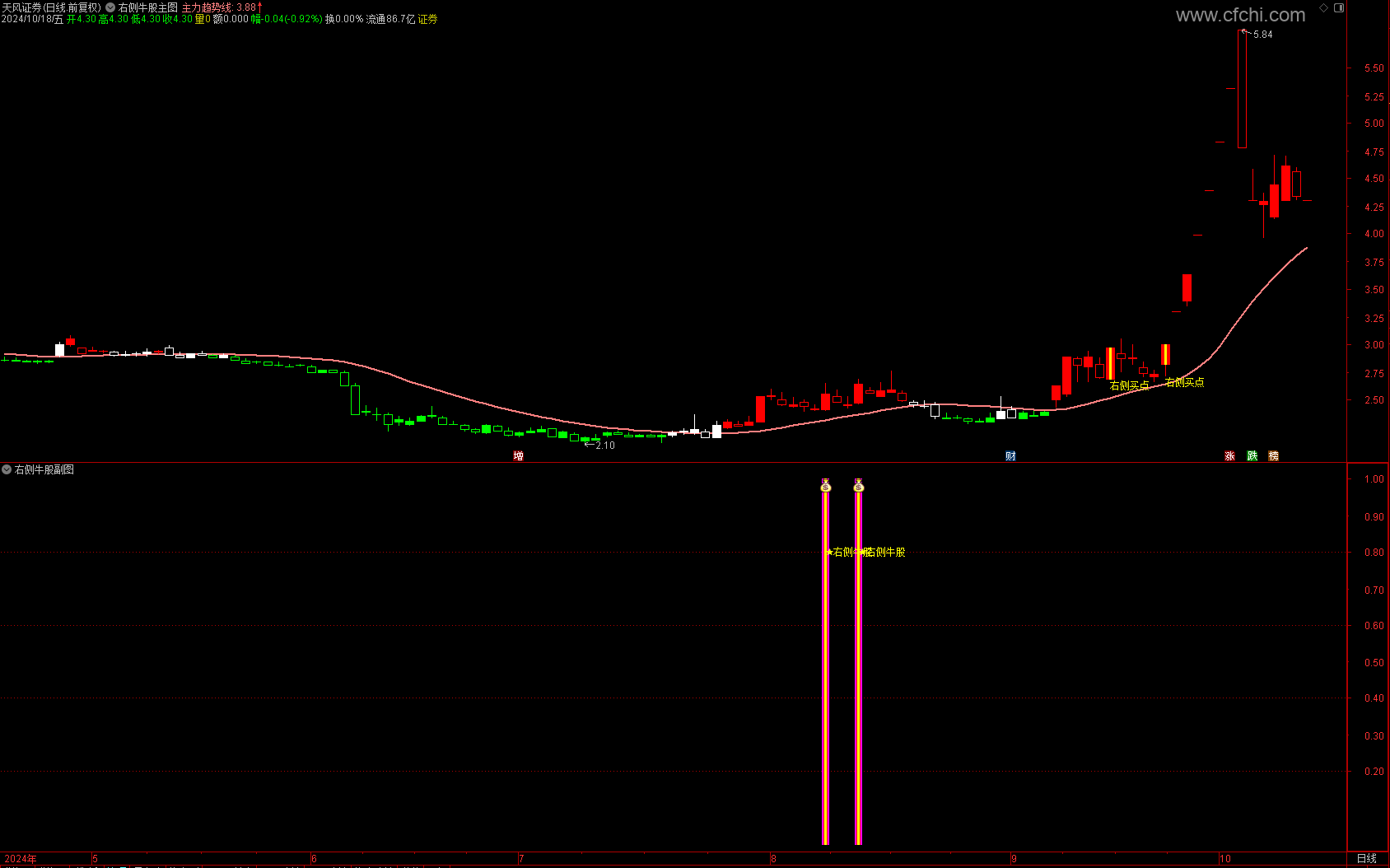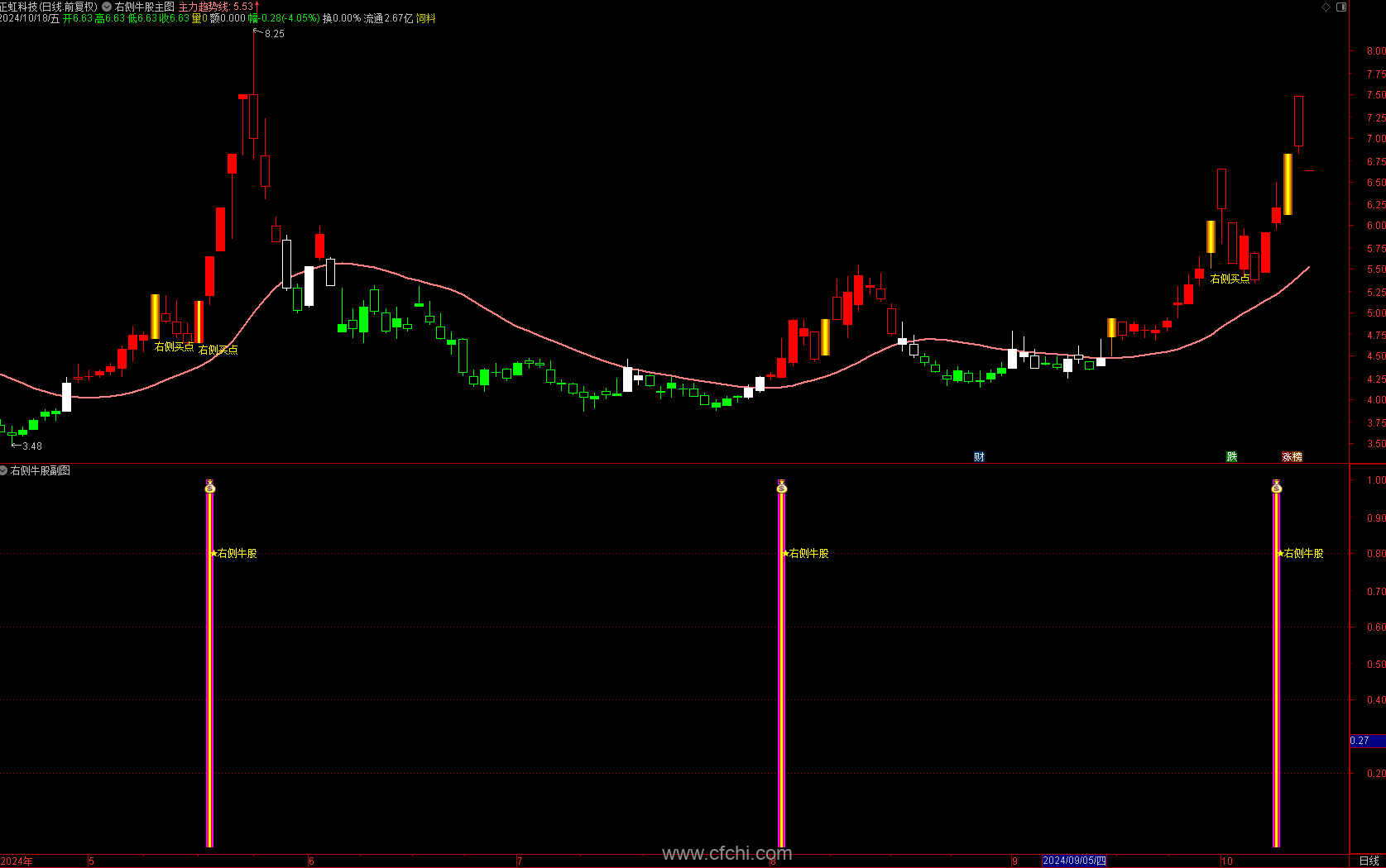 主副图右侧信号共振为牛股的右侧确定性买点。