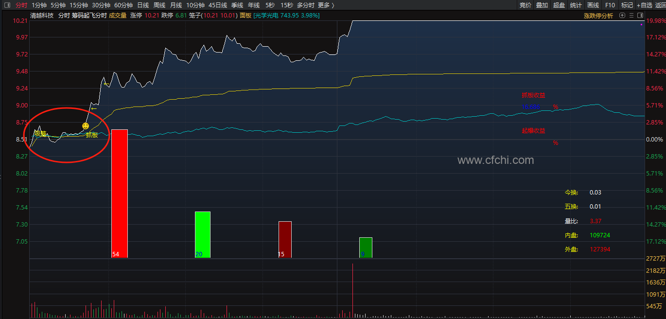 通达信筹码抓板起飞分时主图指标 分时图抓涨停板神器 源码