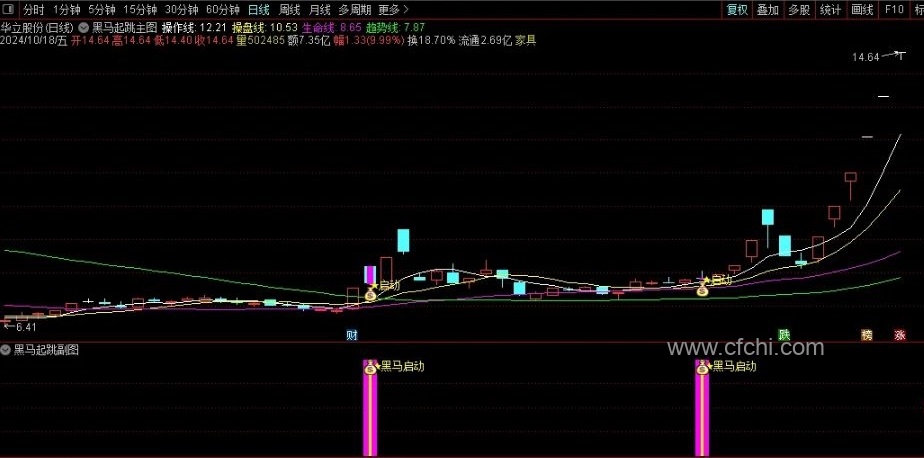 "起跳"是"黑马"拉升时的启动信号,而大多数的拉升点,也是在这个特别线附近的开始的。