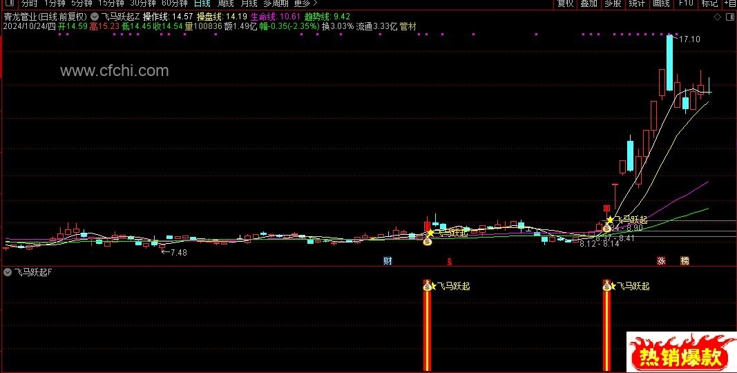 举例多个成功的信号案例(当然也有失败的),可以看到,这是一款不错的金钻系列公式,如近期的"文一科技、光智科技、双城药业、华立股份、重庆建工、四川金顶、成都路桥、城地香江、海能达、国民技术、新宏泰、等等;在启动前均出现了【飞马起跃】的信号。