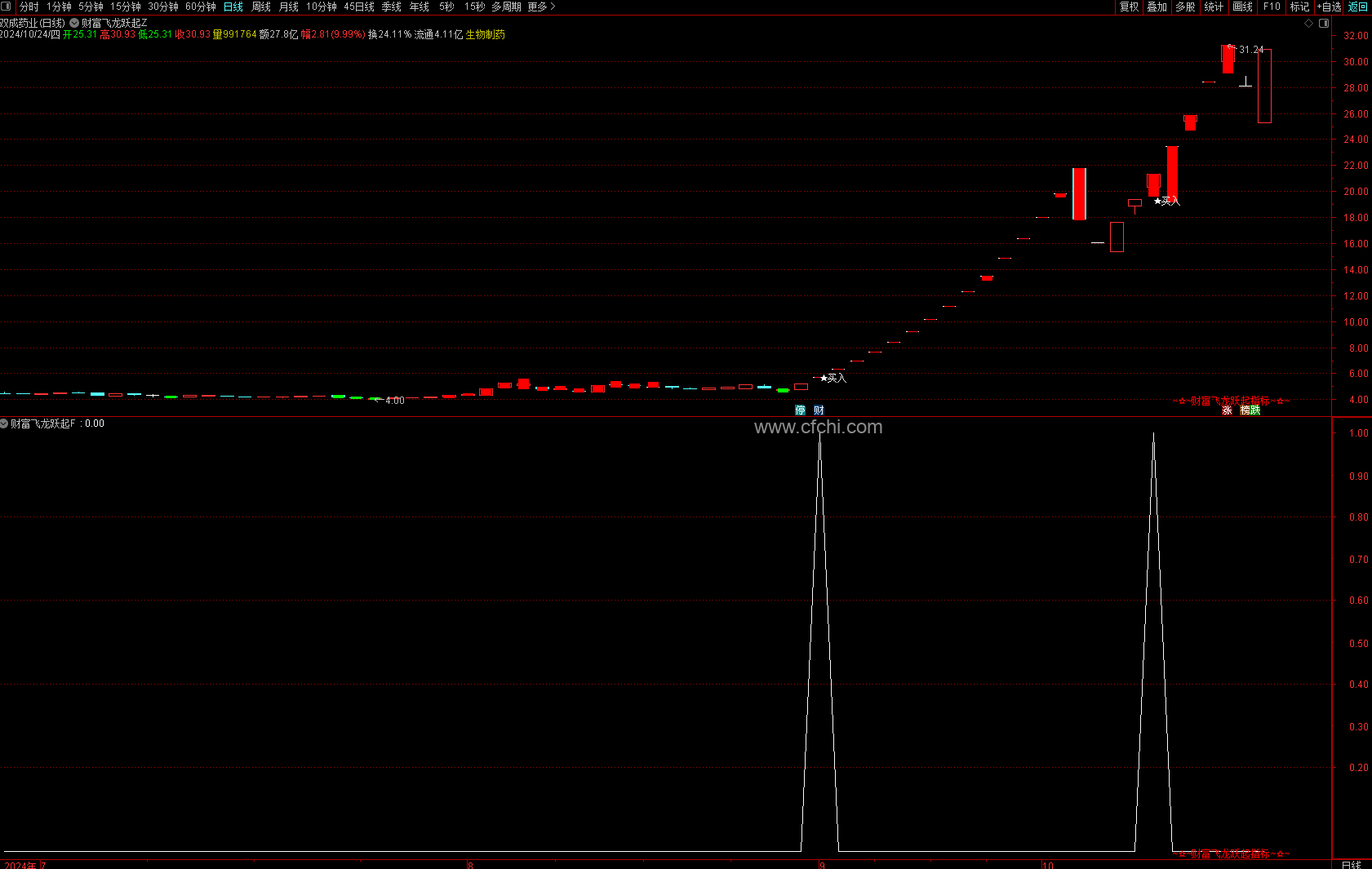 举例无数个成功的信号案例,可以看到,这是一款不错的指标公式,大多牛股在启动前均出现了【飞龙跃起买入】的信号。