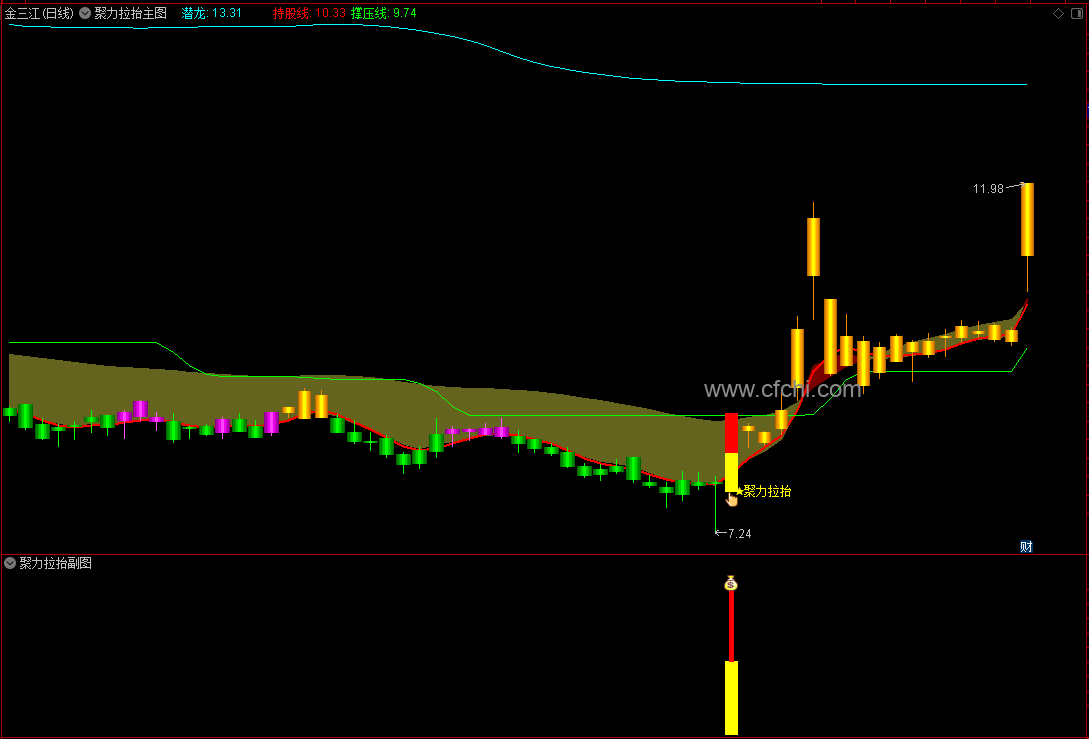(【聚力拉抬】通达信聚力拉抬主副图选股指标,源码分享)