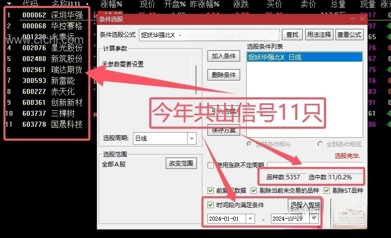 (通达信【捉妖华强北】主图附图选股/信号不多一款专门抓妖的指标/胜率高达97%/电脑版)