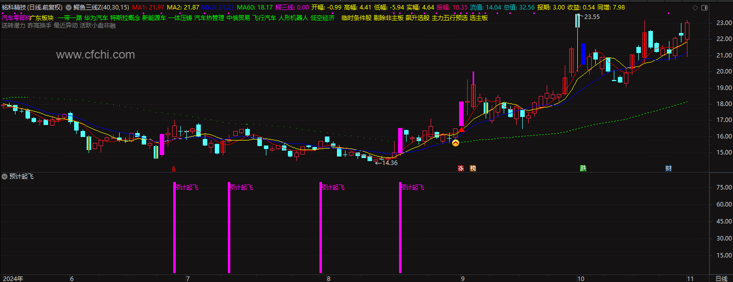 财富金池通达信鳄鱼三线预计起飞主图副图选股指标