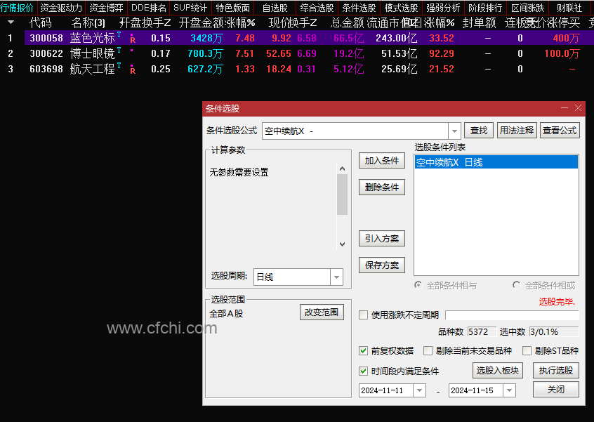 空中续航指标就是选取的主升浪启动初期形成空中加油形态的个股,后期有更高的拉升空间。指标条件严格,信号较少,最近一年70多只信号,行情走好,进入主升浪的票多的时候,信号会适当增加。也很好的规避了行情整体不好的风险。