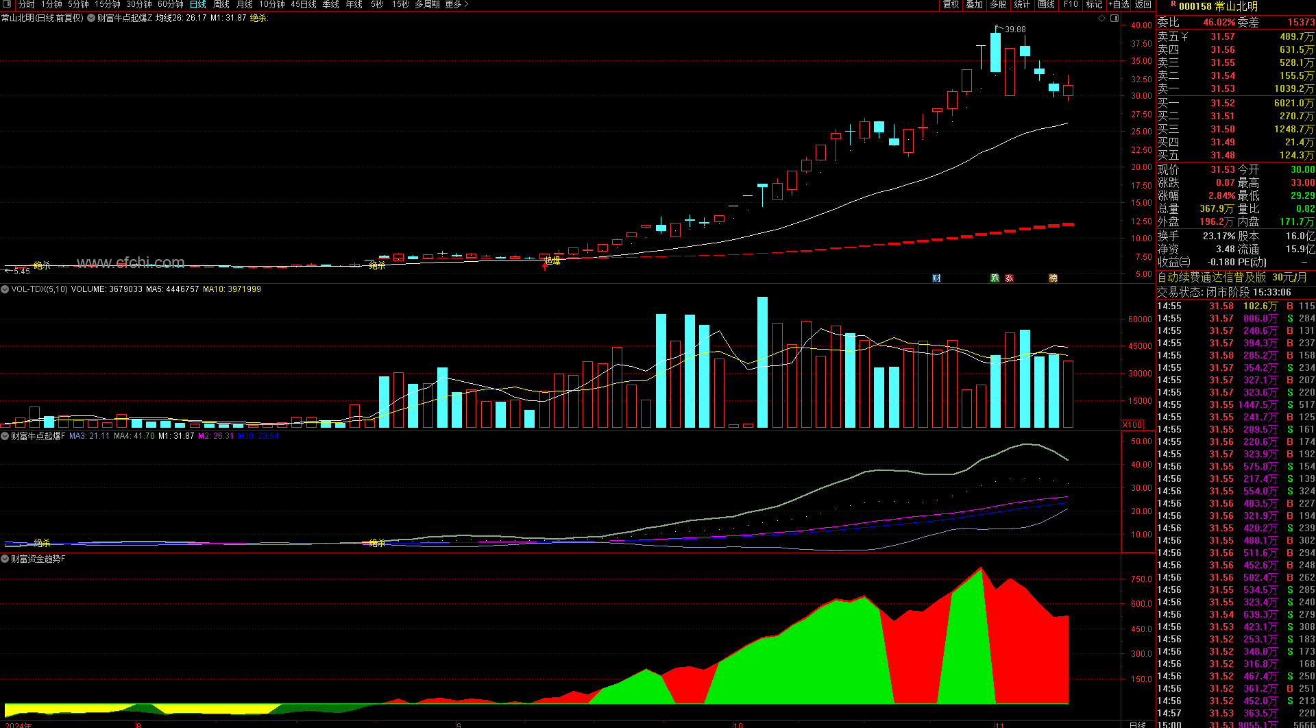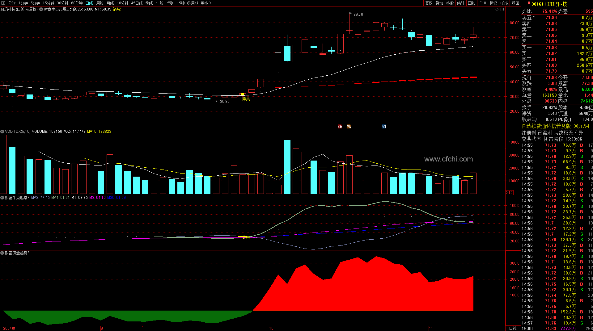 副图财富资金趋势指标: