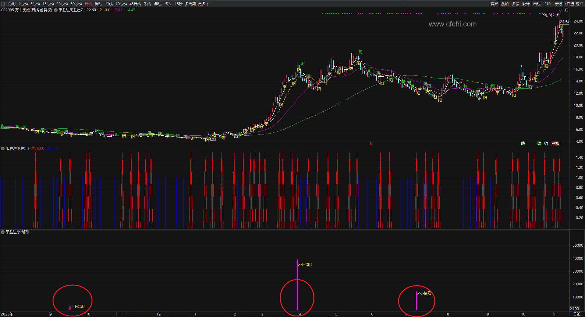 通达信阳胜进阴胜出+小倍阳 主副图和选股 源码