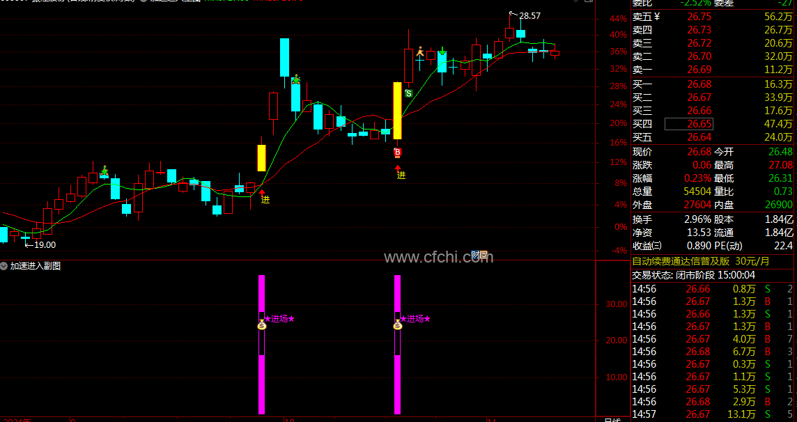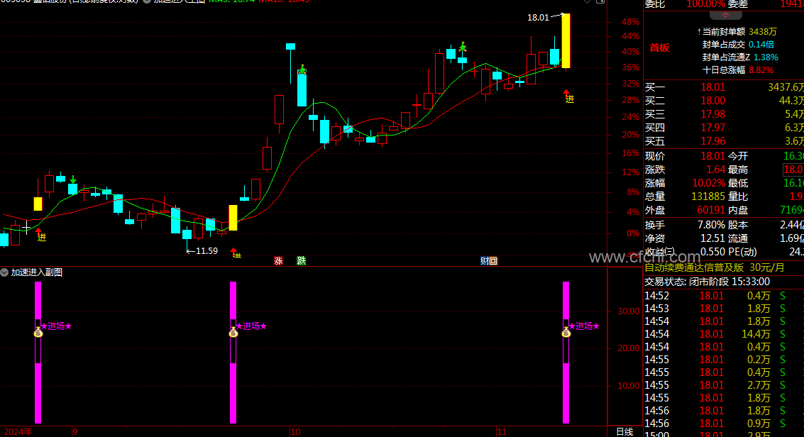 该指标能够精准捕捉主力资金在上涨过程中的加速动作,并加入进场提示,