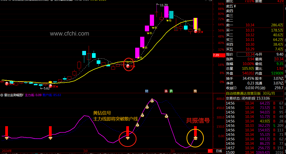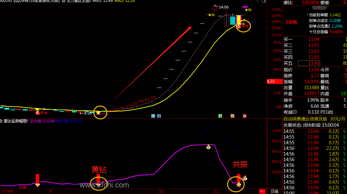 套装指标包含:主力雷达主图+雷达监控副图+黄钻石信号选股+黄钻石与钱袋子信号共振选股;