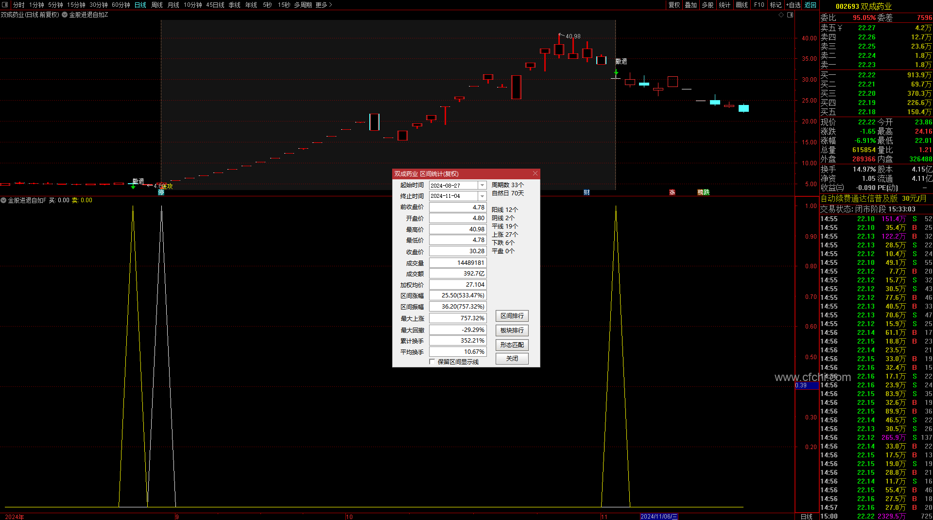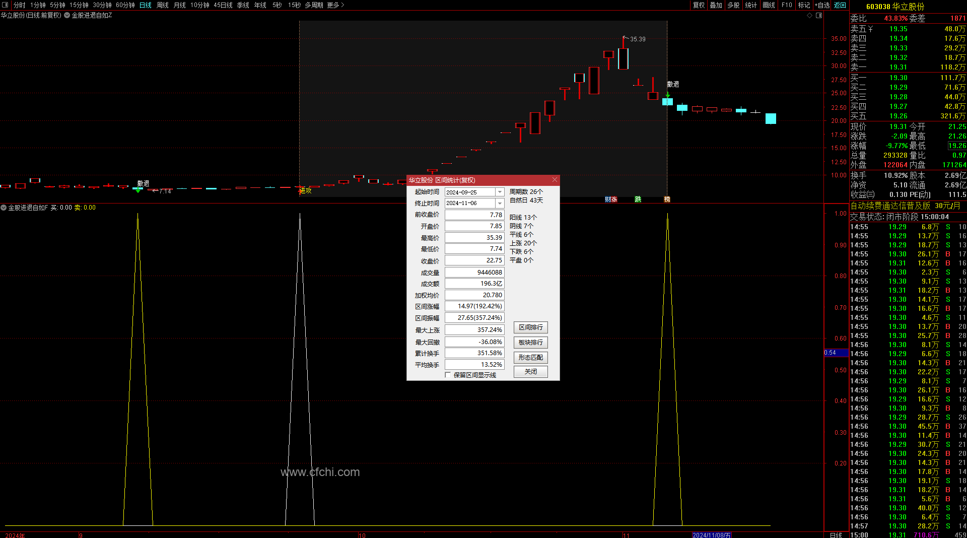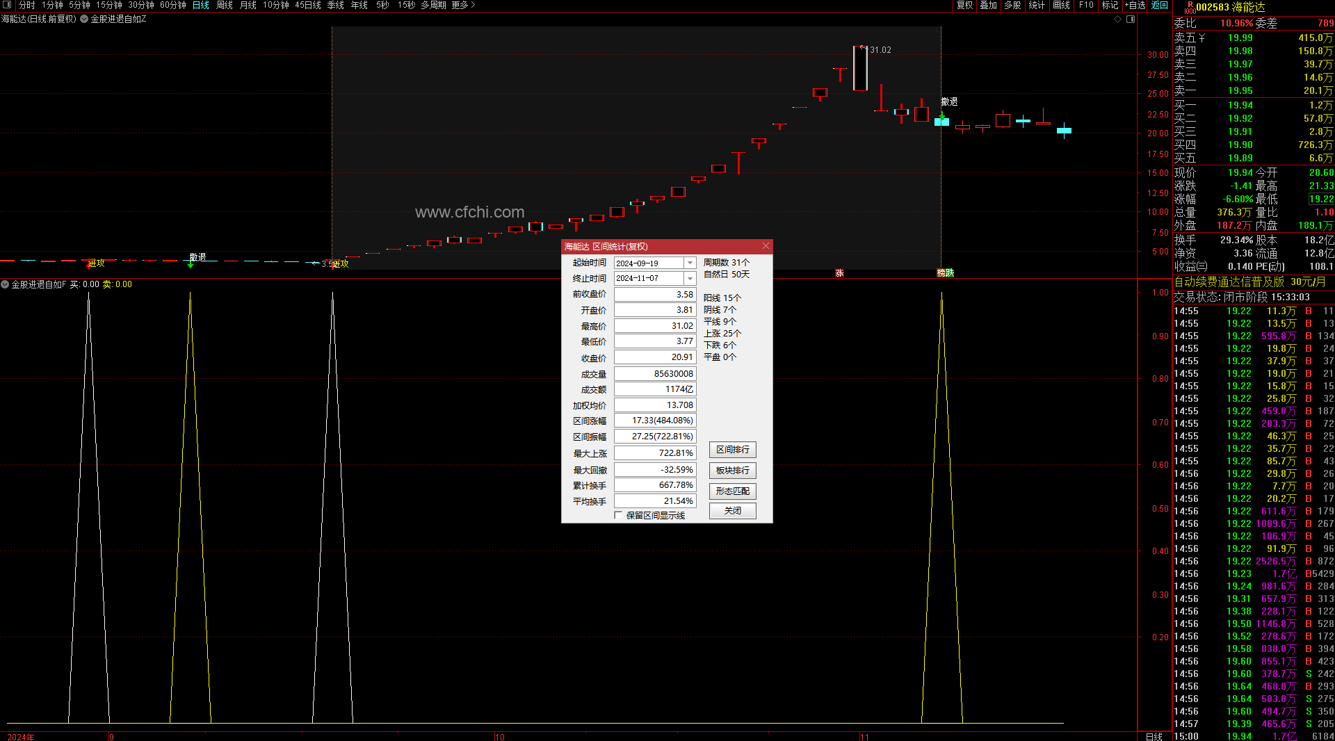 (金典通达信“金股进退自如”指标监控主力进出动向)