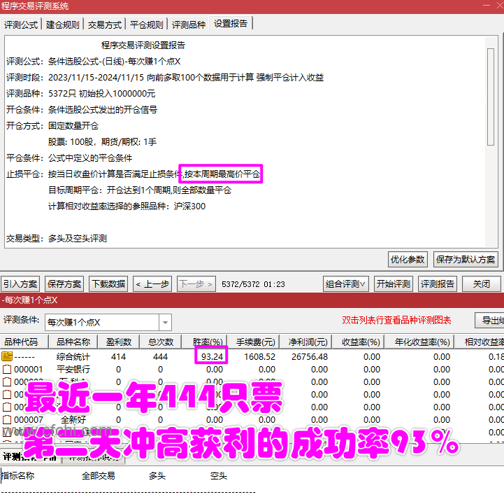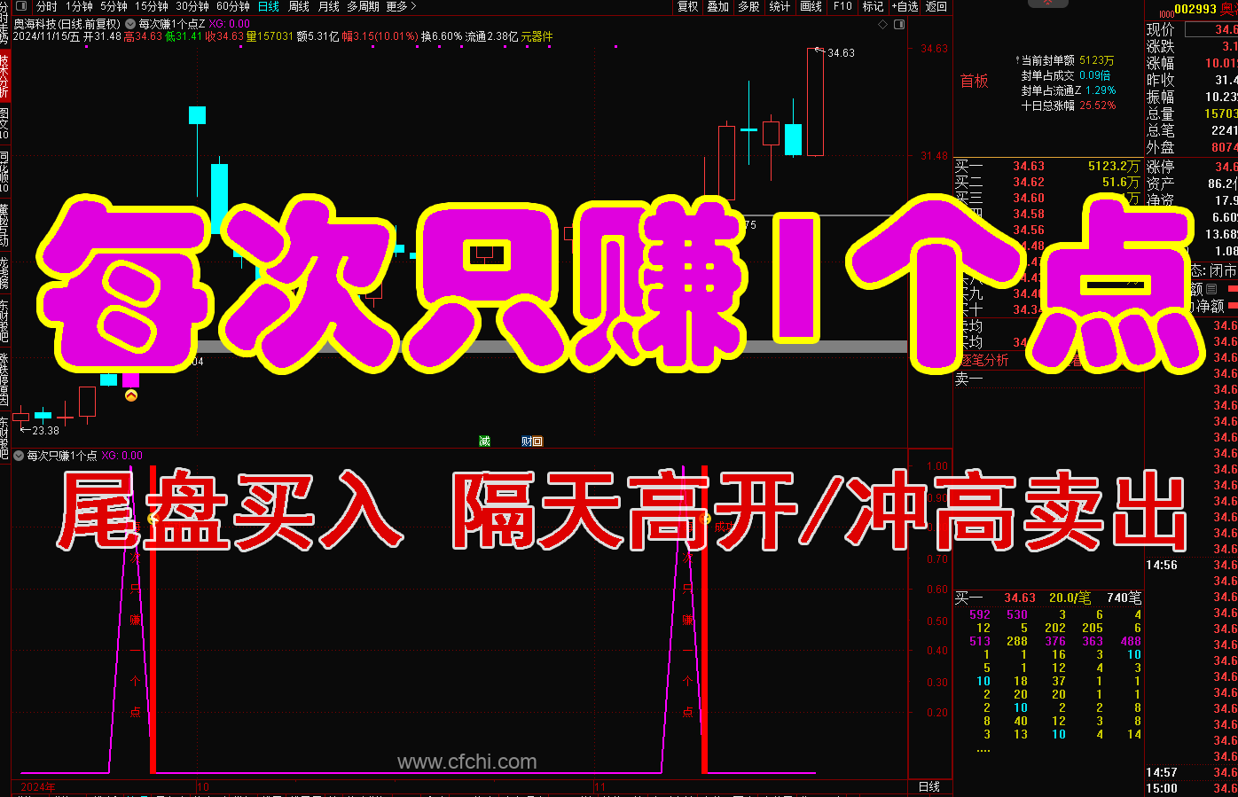 (【每次只赚1个点】尾盘选股买入,隔天高开冲高卖出,不求暴利,只求细水长流,每次只赚1个点,胜率93%)