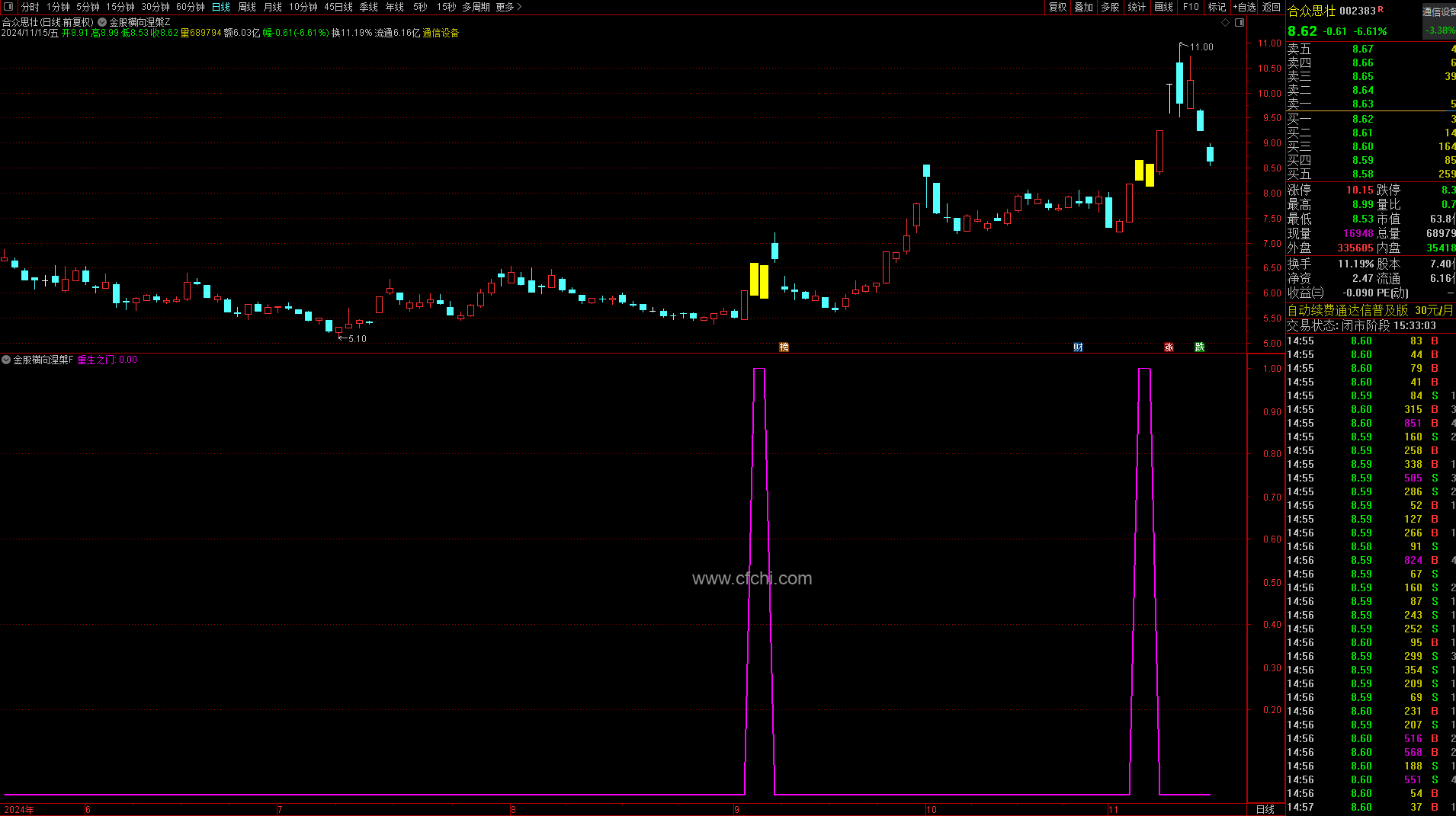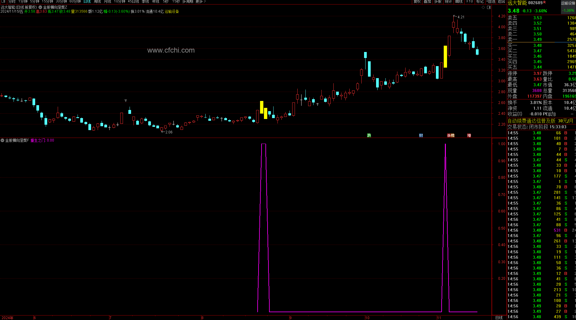 精华版:分时主力吸筹:增加了买入点提示,效果不错。手机电脑都可用。