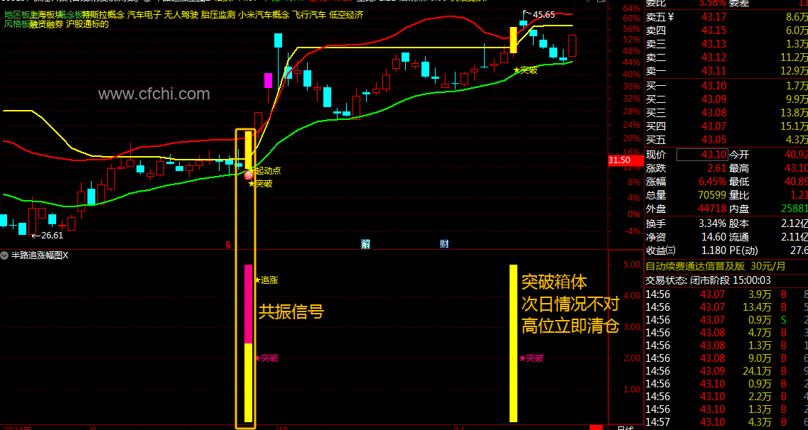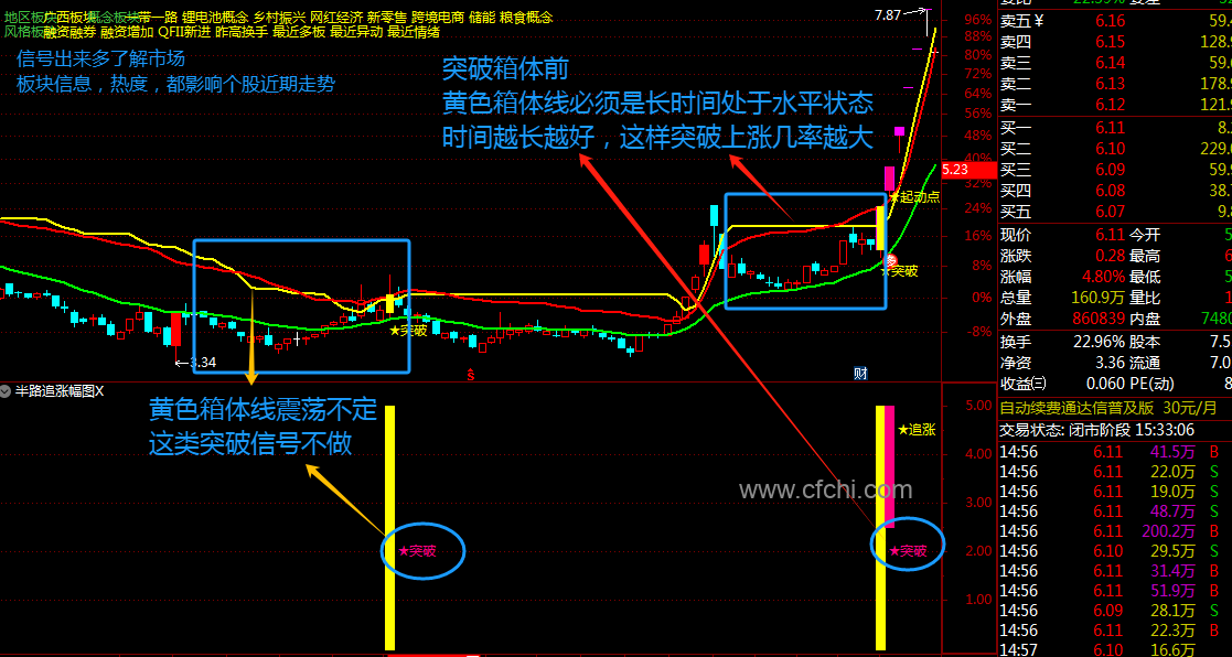 半路追涨箱体突破指标介绍: