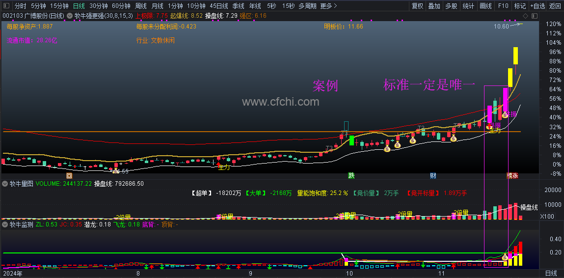 牧牛强更强系统不提供选股,因为所以的牛谷都走出来才叫牛谷,牧牛强更强系统核心在于寻找到牛的基因、牛要起飞的那个时刻,脱离了基因的选股指标是没有任何价值的,所有的选股一定是基于个谷良好的结构、强大的逻辑、题材的热度、资金的认可。