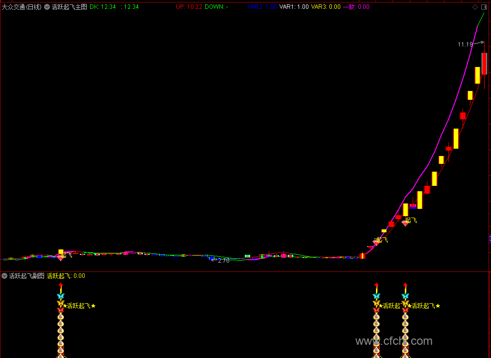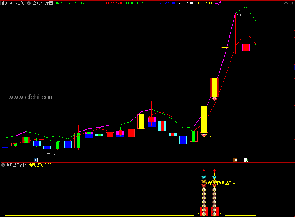 (【活跃起飞】通达信活跃起飞主副图选股指标,起飞涨停先人一步!源码)