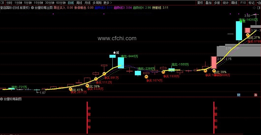 精华版:分时主力吸筹:增加了买入点提示,效果不错。手机电脑都可用。