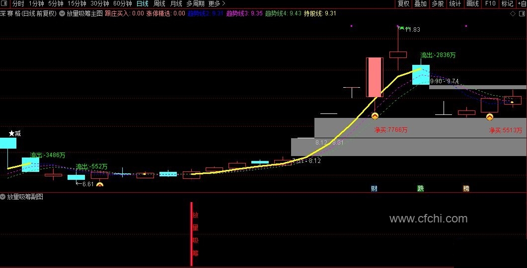 主图净买入额,副图放量吸筹共振是确定性的买点。