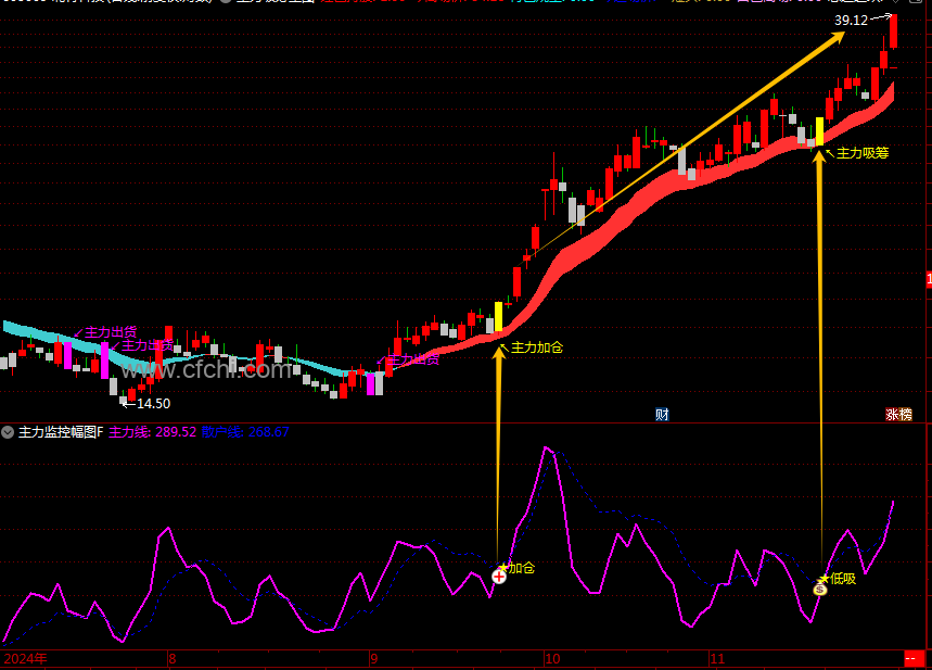 (通达信【新版主力加仓】指标1主图1幅图3选股主力加仓快进快出不含未来函数)