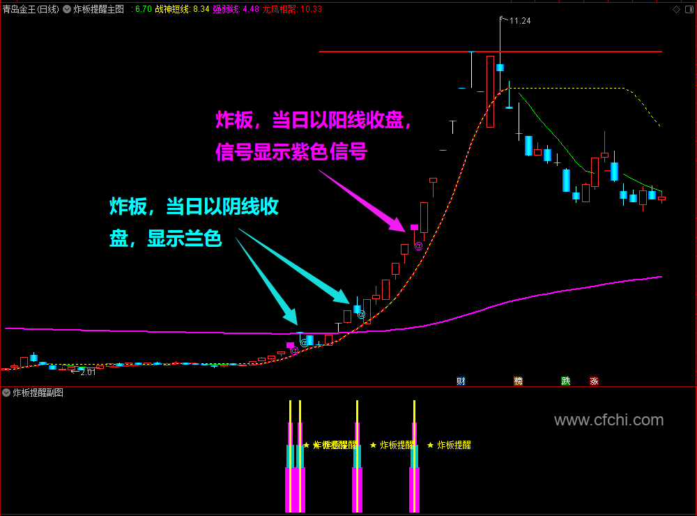 (【炸板提醒】通达信炸板提醒主副图选股指标,源码分享)