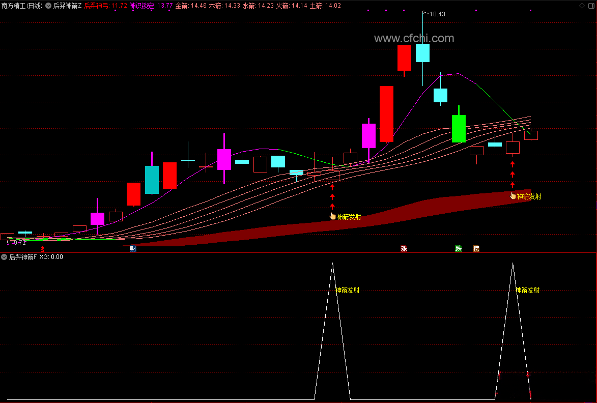 (通达信【后羿神箭】优化版主图附图选股/波段思路手机电脑通用无未来函数 源码指标分享)