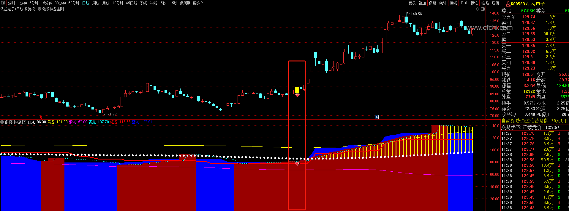 1、当蓝龙、红龙均大于白龙为黄色柱,可视为强势特征,一般很容易出现一波上涨行情。