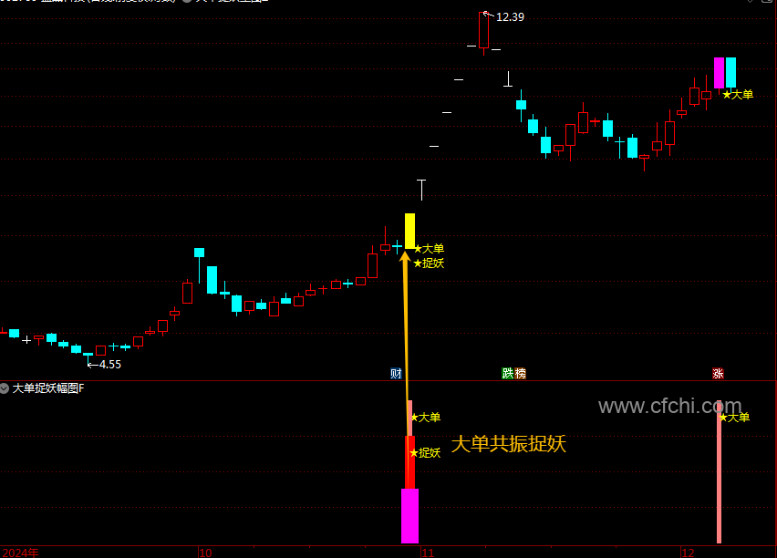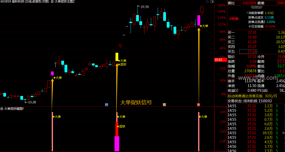 (通达信【大单捉妖】套装指标1主图1幅图2选股大单流入共振捉妖不含未来函数)