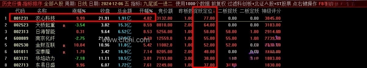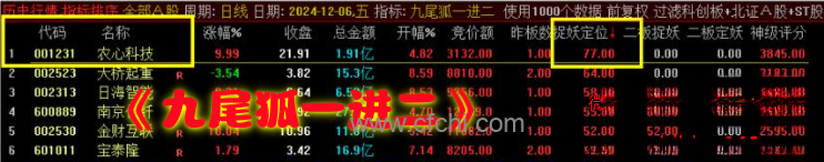 (通达信【九尾狐竞价一进二】排序主图附图选股/较高封版率竞价擒龙模式可当天回测不可历史回测)