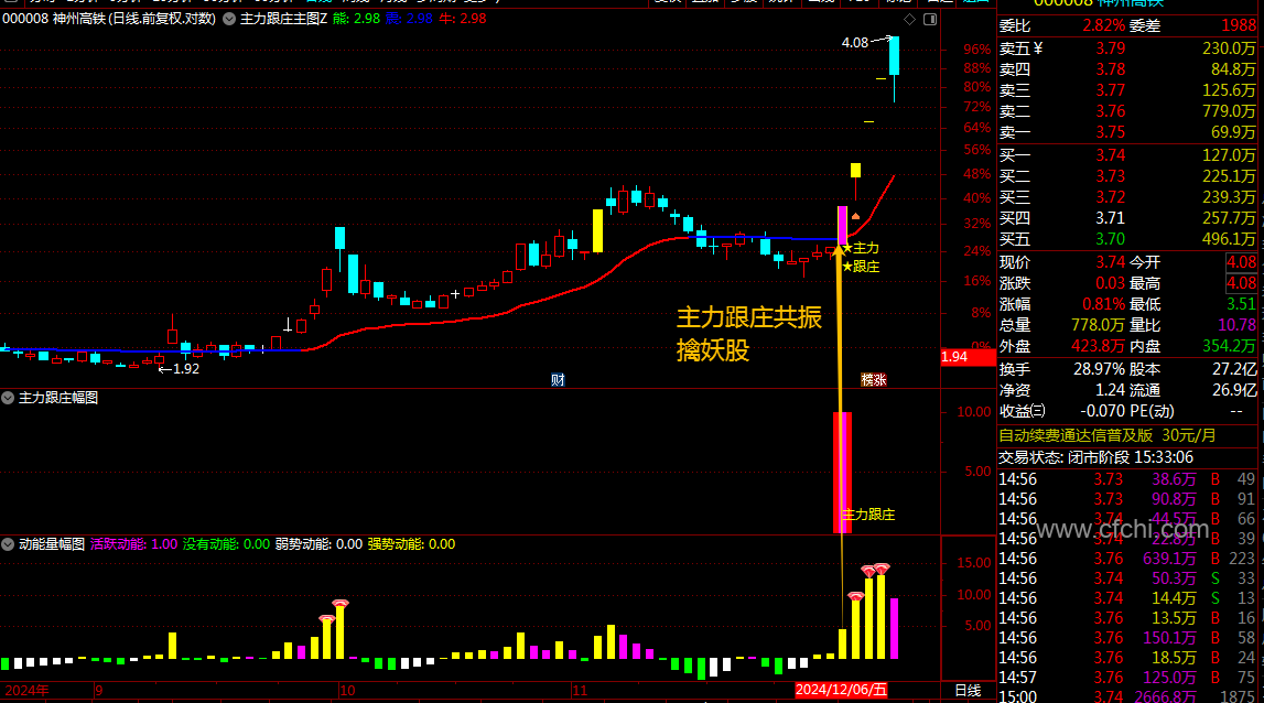 (通达信【主力跟庄+动能量】套装指标1主图2幅图2选股主力跟庄抓妖股胜率高不含未来函数)