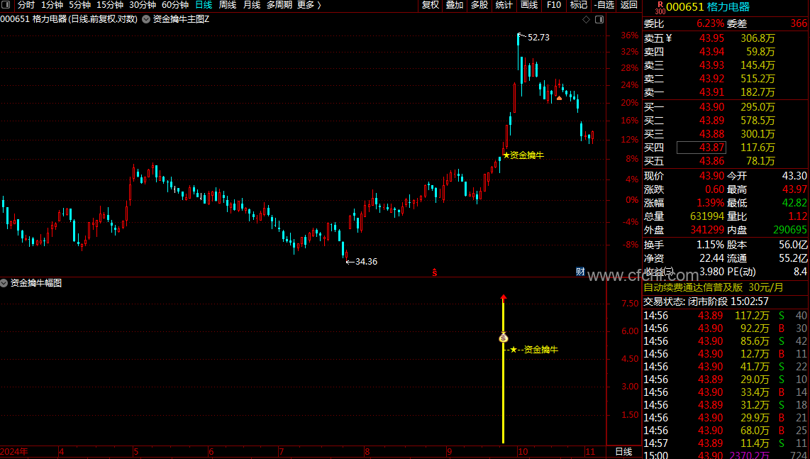 通达信【资金擒牛】指标\1主图1幅图1选股,无未来函数