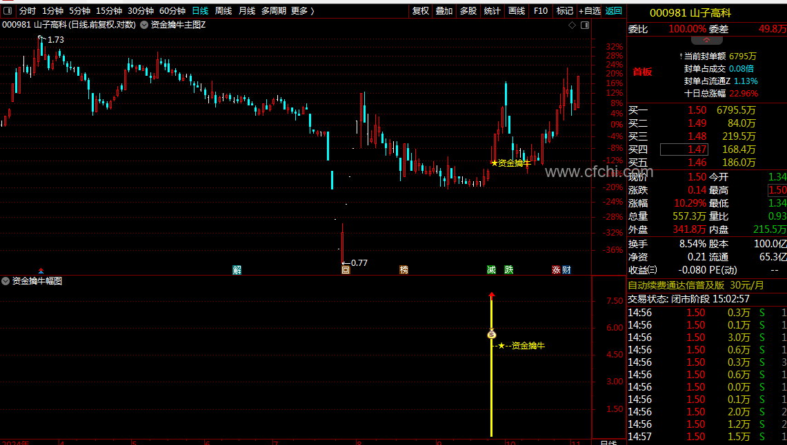 (通达信【资金擒牛】指标1主图1幅图1选股,抓妖股,胜率高,无未来函数)