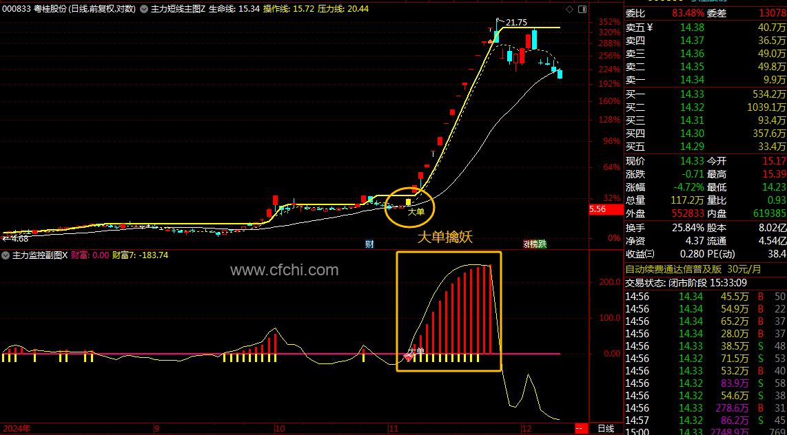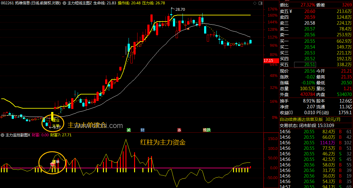 通达信【主力大单监控】指标\1主图1幅图3选股\主力监控大单建仓强势抓妖股胜率高\不含未来函数