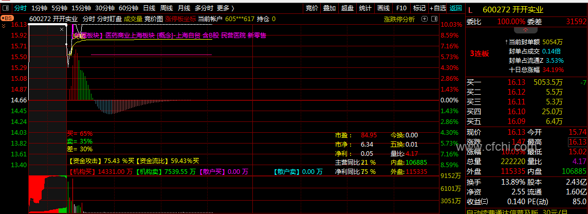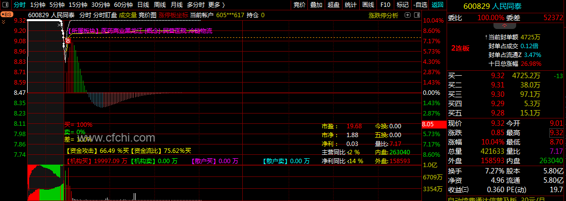 (通达信分时盯盘主图指标看个股市场资金动向及个股详细比例)